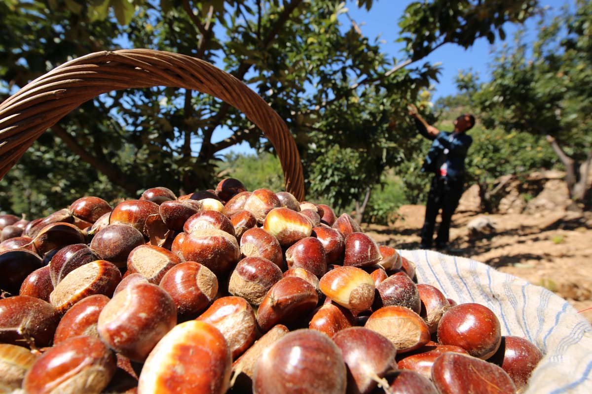 农民收获板栗。刘环宇 摄