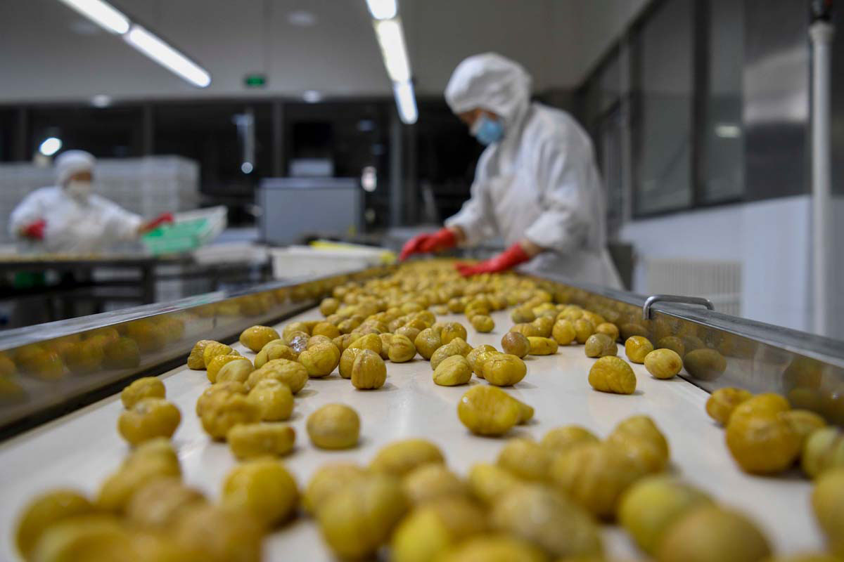 一家板栗深加工企业的工人在生产线上忙碌。刘环宇 摄
