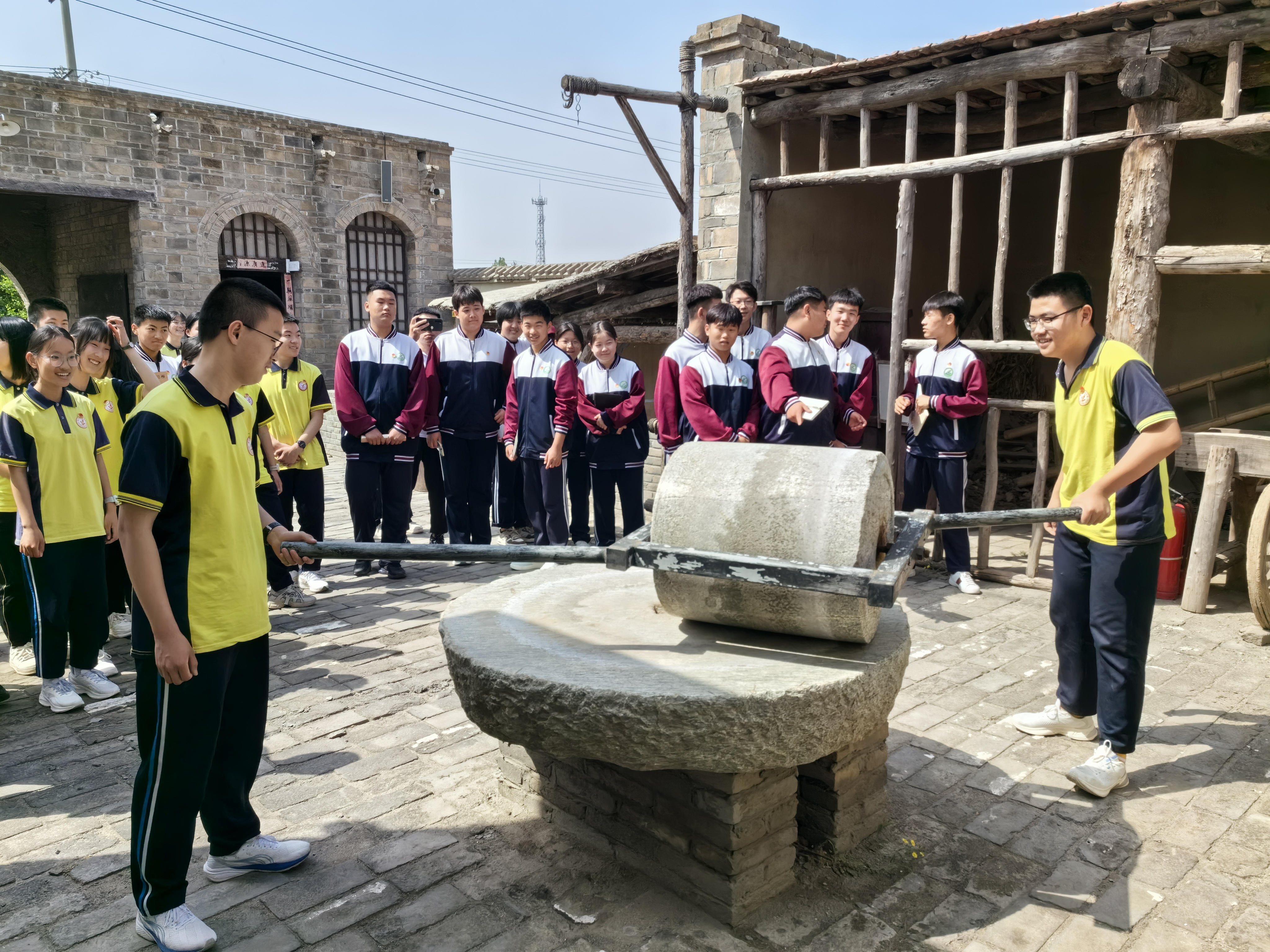 仪式结束后,团员们在讲解员的带领下,参观耿长锁纪念馆,聆听全国劳动模范耿长锁的革命故事。走进耿长锁故居和耿长锁农业生产合作社农具室,了解革命时代的生活用品和农用工具,体验磨碾子、打麻绳、转磨盘,感受传统农作文化。