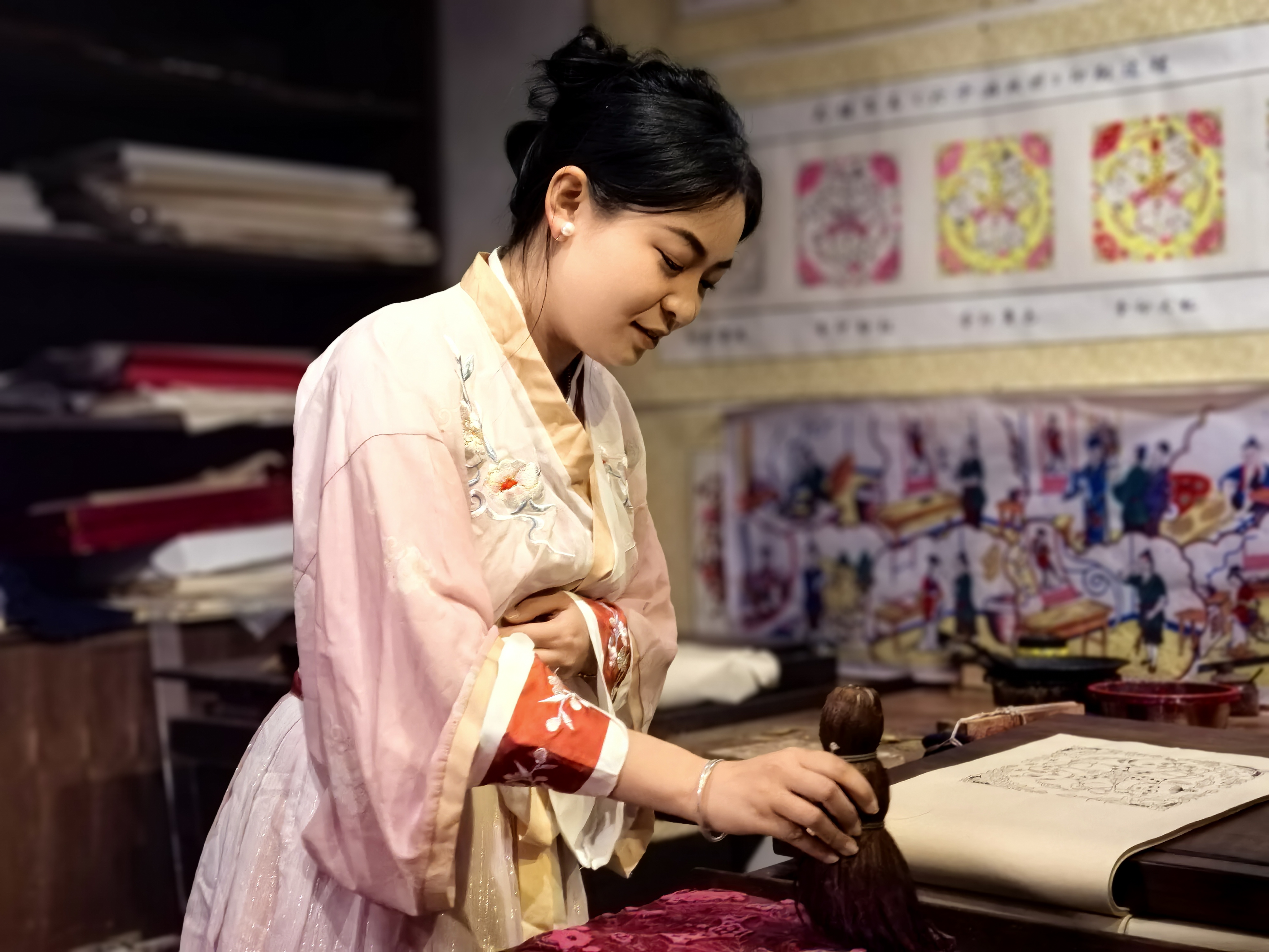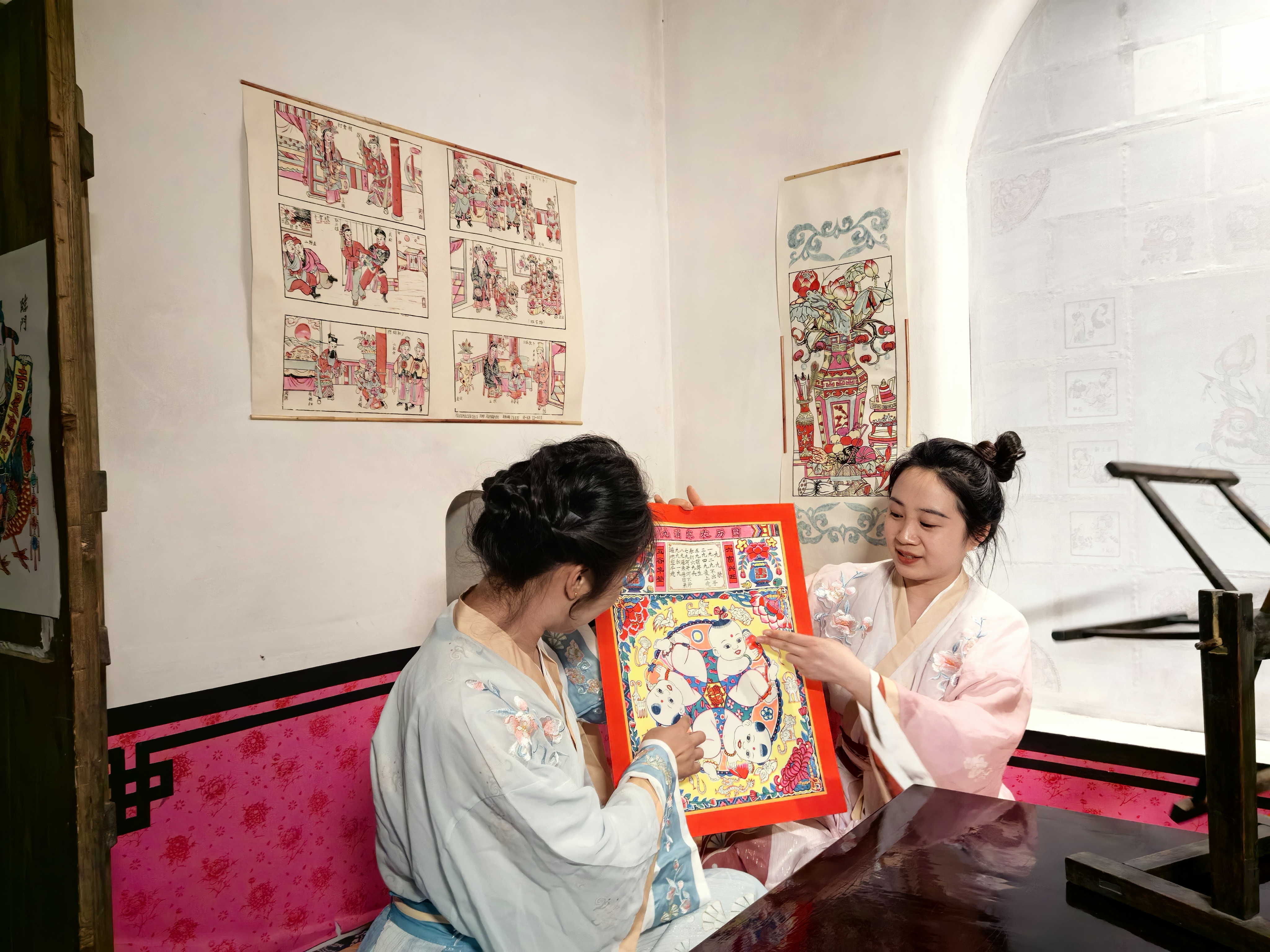 作为“五一”特别文化活动之一,在此次汉服打卡活动中,武强年画博物馆还组织了汉服秀、游戏互动、传统年画拓印等丰富多彩的文化活动,让游客在欣赏传统华服美学的同时,通过更趣味性的方式体验,走进年画文化历史中,感受中华文化魅力。