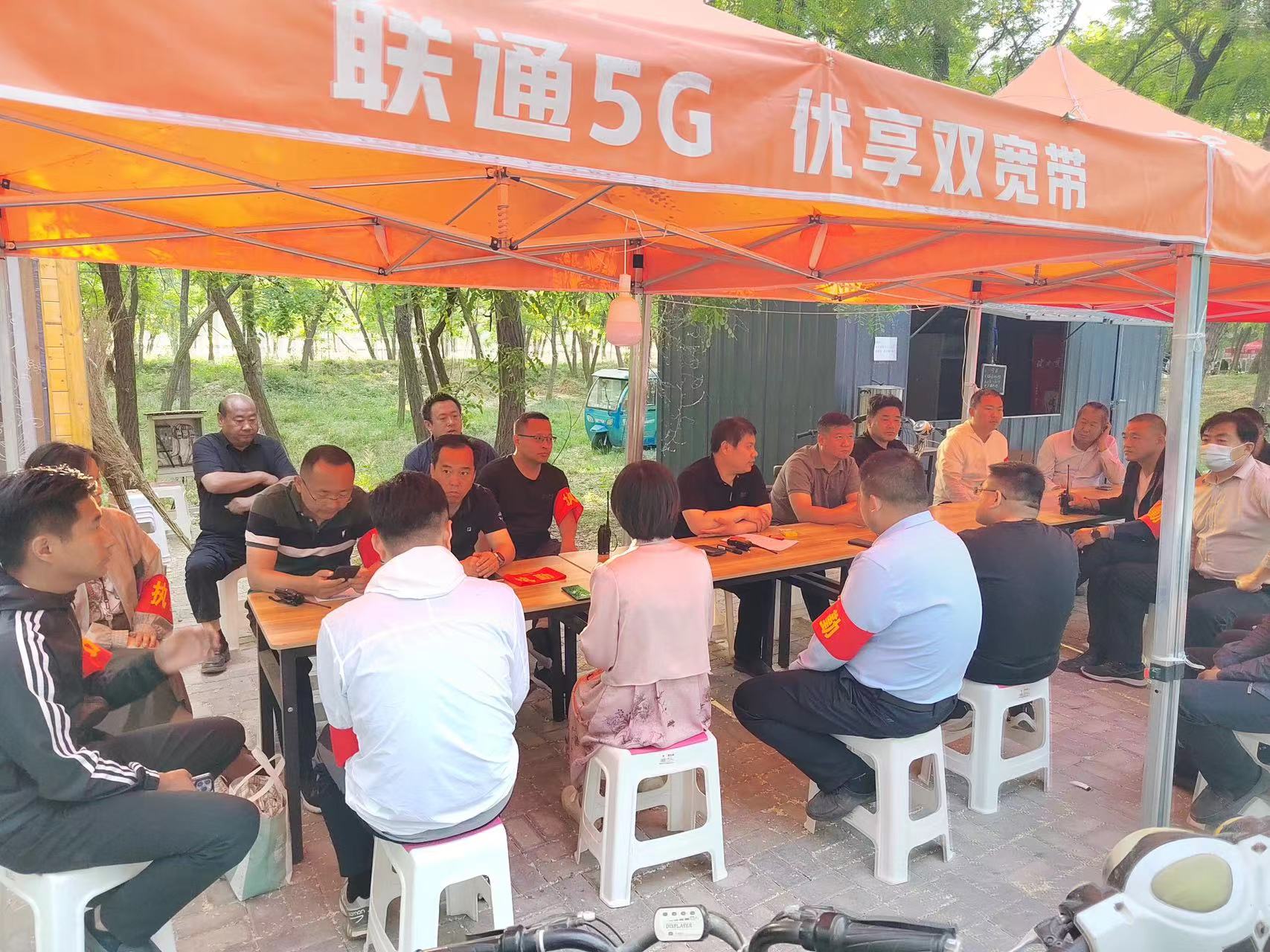 已经是晚上九点,小摊贩们已经陆续收摊,但在槐林中搭建的办公室里,灯光依旧很亮,是他们,守护着这片槐林,对工作保持着“不打烊”的坚守。