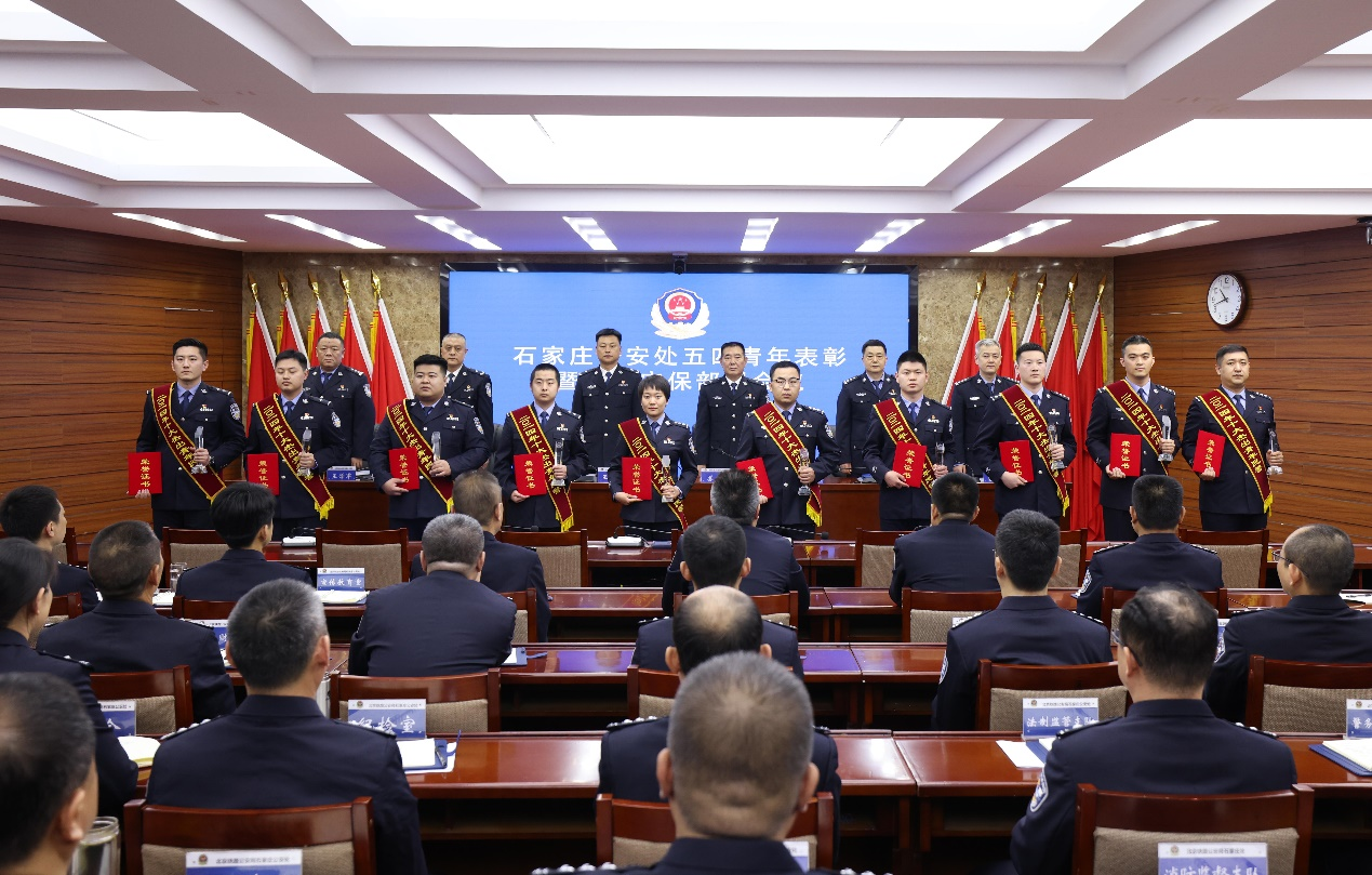 为进一步深化青年民警教育引导,全面推进青年先进典型发现、培养、选树工作,强化青年引领示范作用,集中展示青年民警忠诚为民、无私奉献、创新进取的良好精神风貌,充分调动全处青年民警积极性和主动性,全力投身各项公安保卫任务,公安处党委组织评选2024年度“十大杰出青年民警”,在“五四”青年节前夕,召开表彰大会,为评选出的优秀青年民警颁发荣誉证书和奖杯。