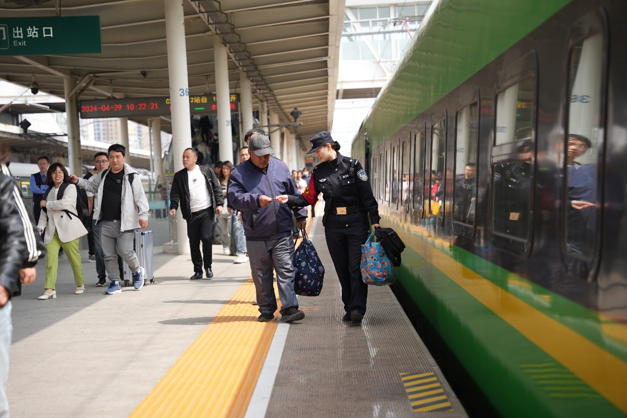 乘警支队青年民警热心帮扶旅客群众。