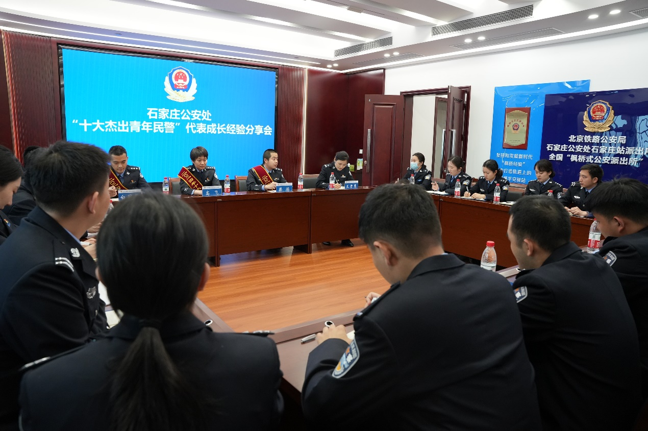 会后,举办“风华正茂,砥砺前行”成长经验交流会。梁烁、高飞、白冠男3名杰出青年民警代表围绕成长经历,立足自身岗位,充分交流分享了自己在工作中的所思、所想、所感、所悟,以自身克服职业成长困难的经验,激励与会见习民警坚定信仰、苦练本领、不懈奋斗,积极投身到各项公安工作中。