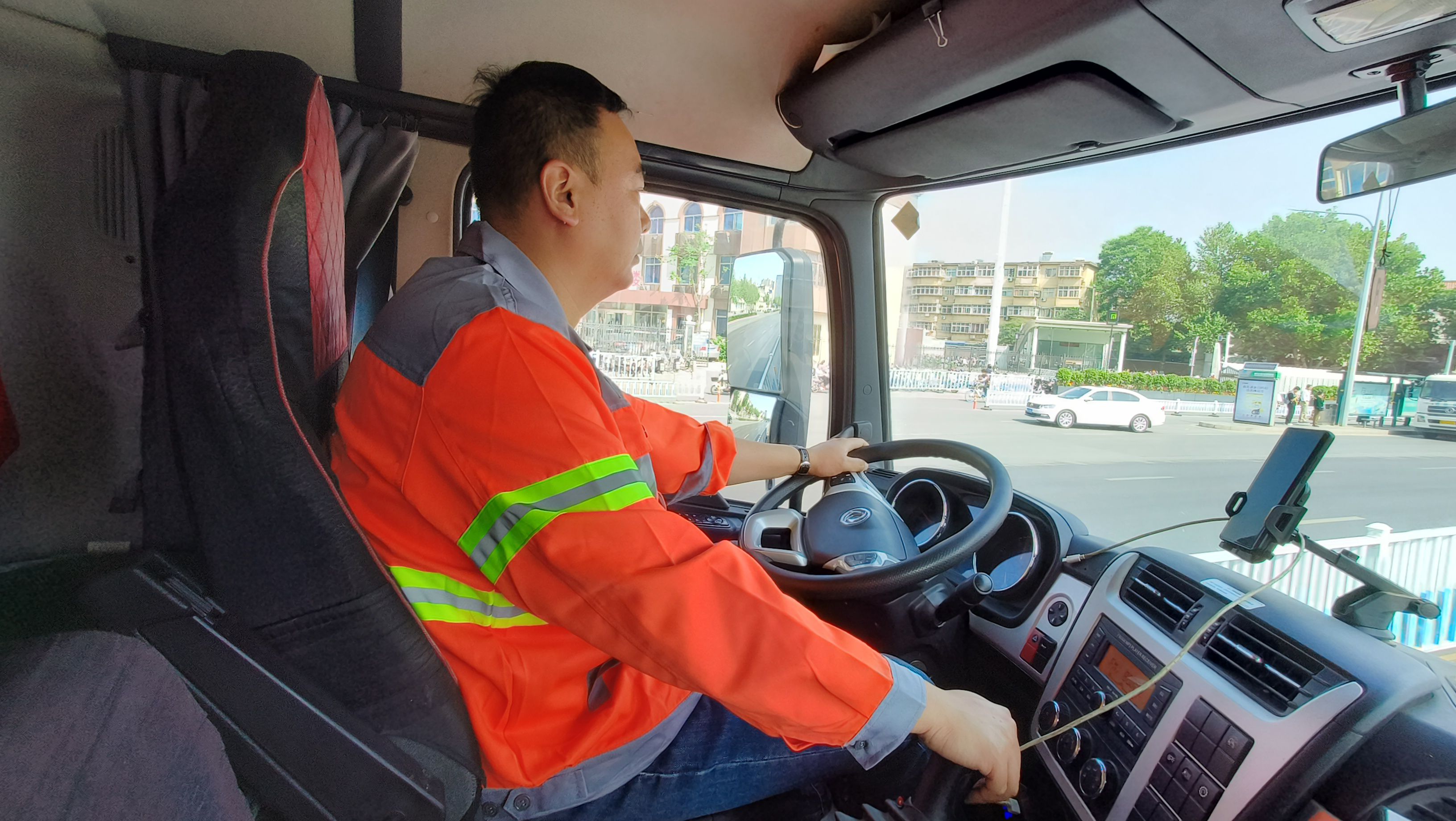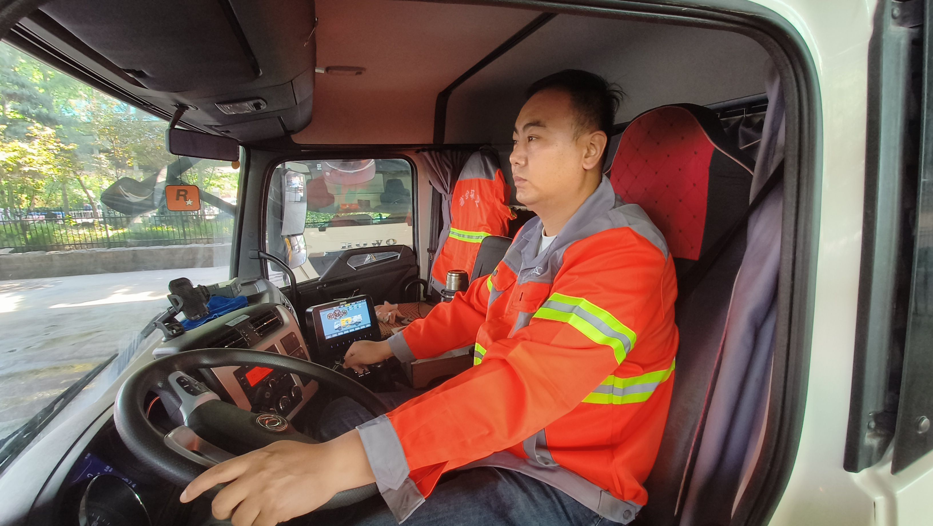 与日常开车不同,上车作业后,尹艳军眼神变得格外专注严肃。只见他盯着前方道路,视线偶尔扫过后视镜,不时观察周围路况,一只手从容地扶着方向盘,腰板笔直,让车辆缓缓行驶,另一只手操控着扫刷和喷水器,动作娴熟,落刷准确。尹艳军说,环卫车司机上路与驾驶普通社会车辆不同,不仅要注意道路安全驾驶,还要保证作业质量,比如沿着路边石清扫,需要一直贴着线走,稍有分神可能撞坏扫刷和喷杆,作业距离太远又会影响清扫效果。