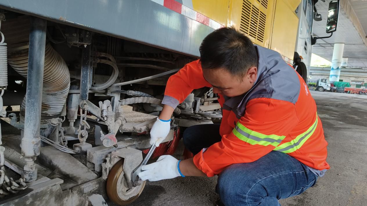5月3日早上8点多,在石家庄市胜利大街北二环附近的运河桥下,尹艳军像往常一样做着出车前的准备。“出车之前首先要检查车的外观,然后检查车的内部,确保气路、油路、电路都正常,不能带病带伤上路,保证车辆处于最佳状态再上路作业。”