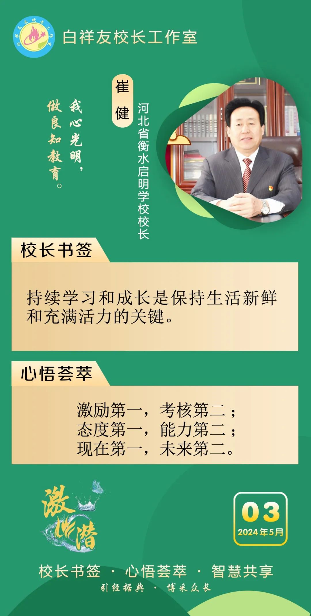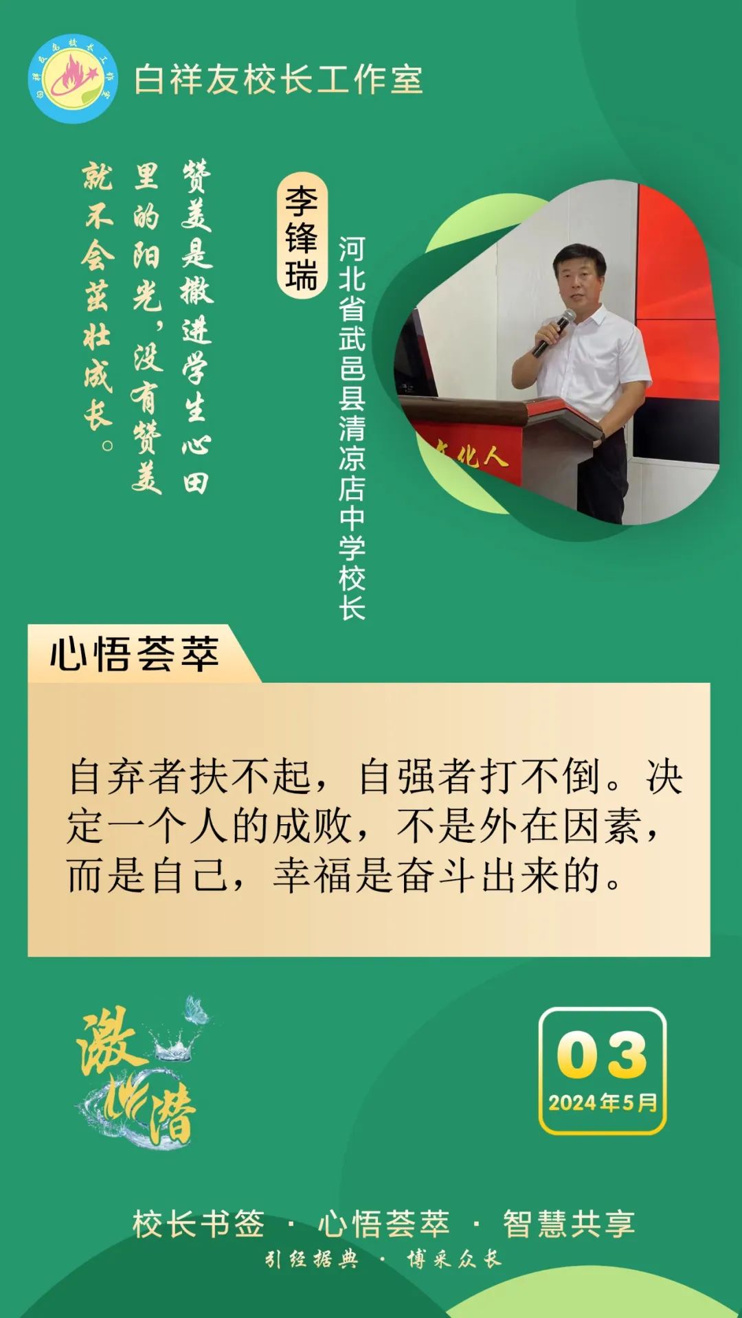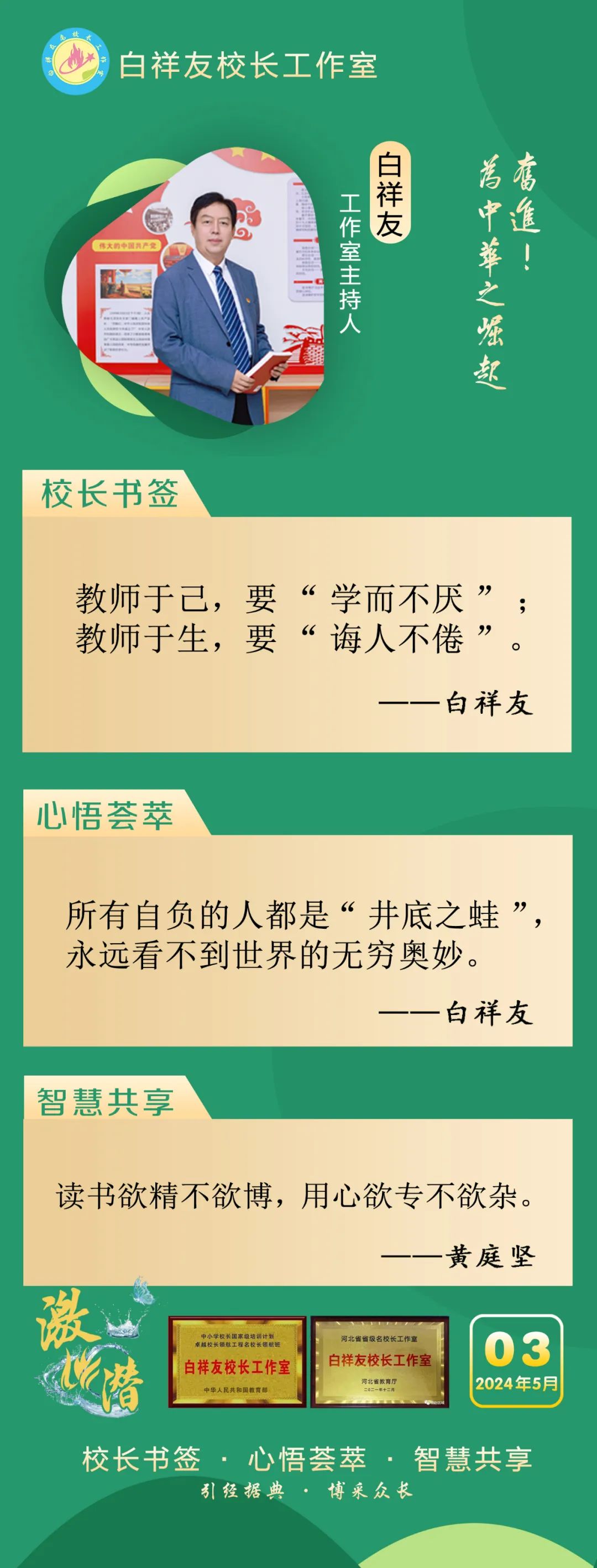 “白祥友校长工作室”成立于2019年4月,是教育部“国培计划”中小学名校长领航工程、河北省首批名校长工作室,目前省内外成员校20个。工作室坚持“资源共享、智慧共融、互助共赢”理念,已成为思想碰撞的交流场,资源共享的品牌站,成果展示的辐射源。