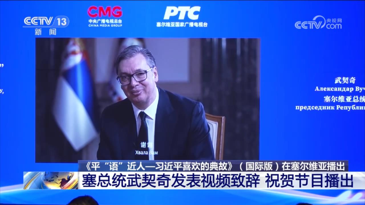 央视网消息:在中国国家主席习近平对塞尔维亚进行国事访问之际,当地时间5月7日,由中国中央广播电视总台制作的《平“语”近人——习近平喜欢的典故》(国际版)在贝尔格莱德上线播出。塞尔维亚总统武契奇向活动视频致辞,祝贺节目在塞尔维亚播出。