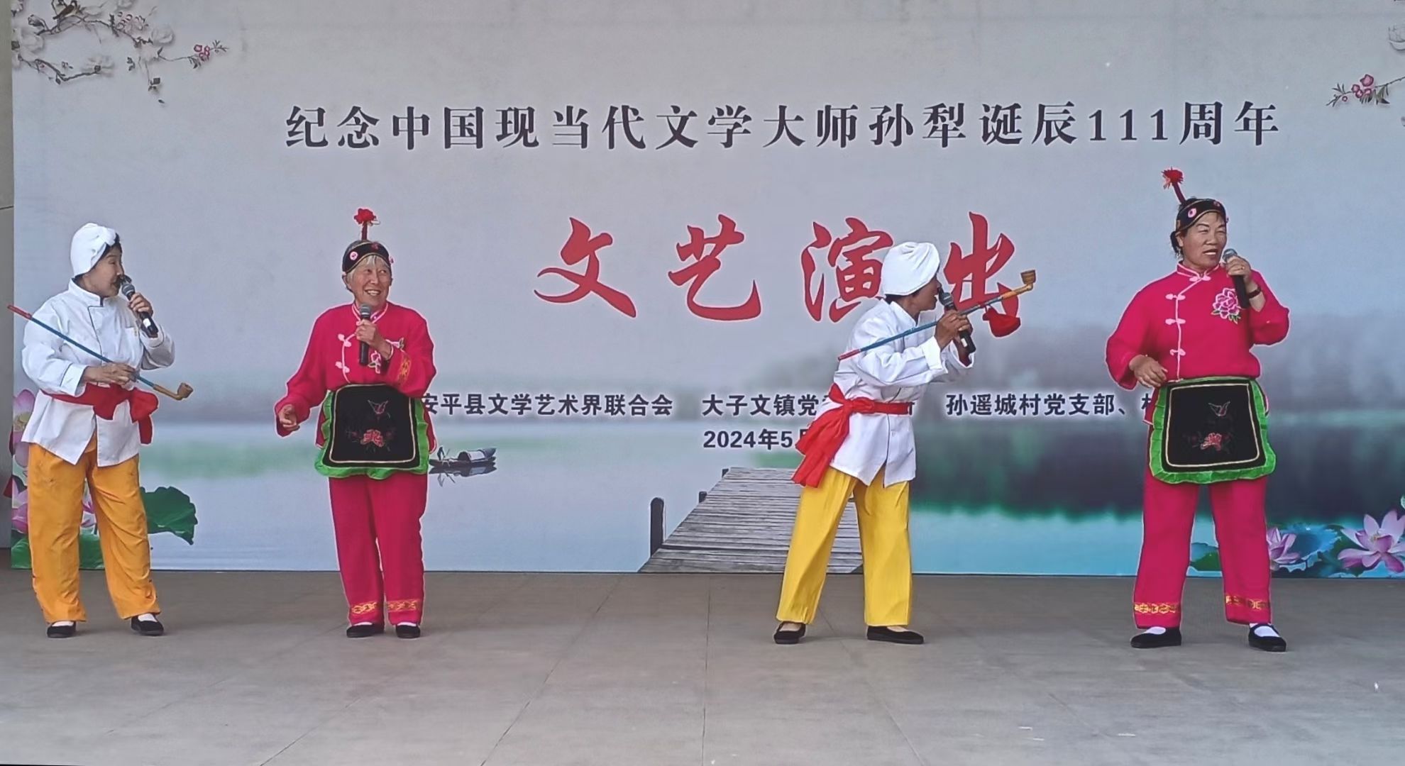 “常常的想起你,我的乡亲孙犁……”,5月8日下午,孙犁故里——安平县孙遥城村文化广场芸夫舞台歌声悠扬,舞姿翩翩,纪念孙犁诞辰111周年文艺演出在这里隆重举行。