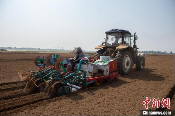 5月8日,在河北省衡水市枣强县一花生种植基地,村民为播种机补充花生种子。连日来,河北省衡水市枣强县的农民抢抓农时播种花生,田间地头呈现出一派繁忙景象。据介绍,枣强县今年预计播种花生面积将达4万亩,年产花生2万吨。