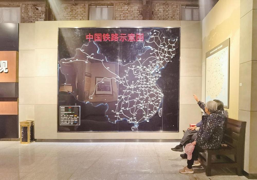 在中国铁路源头博物馆,游客观看中国铁路示意图。 雅静 摄