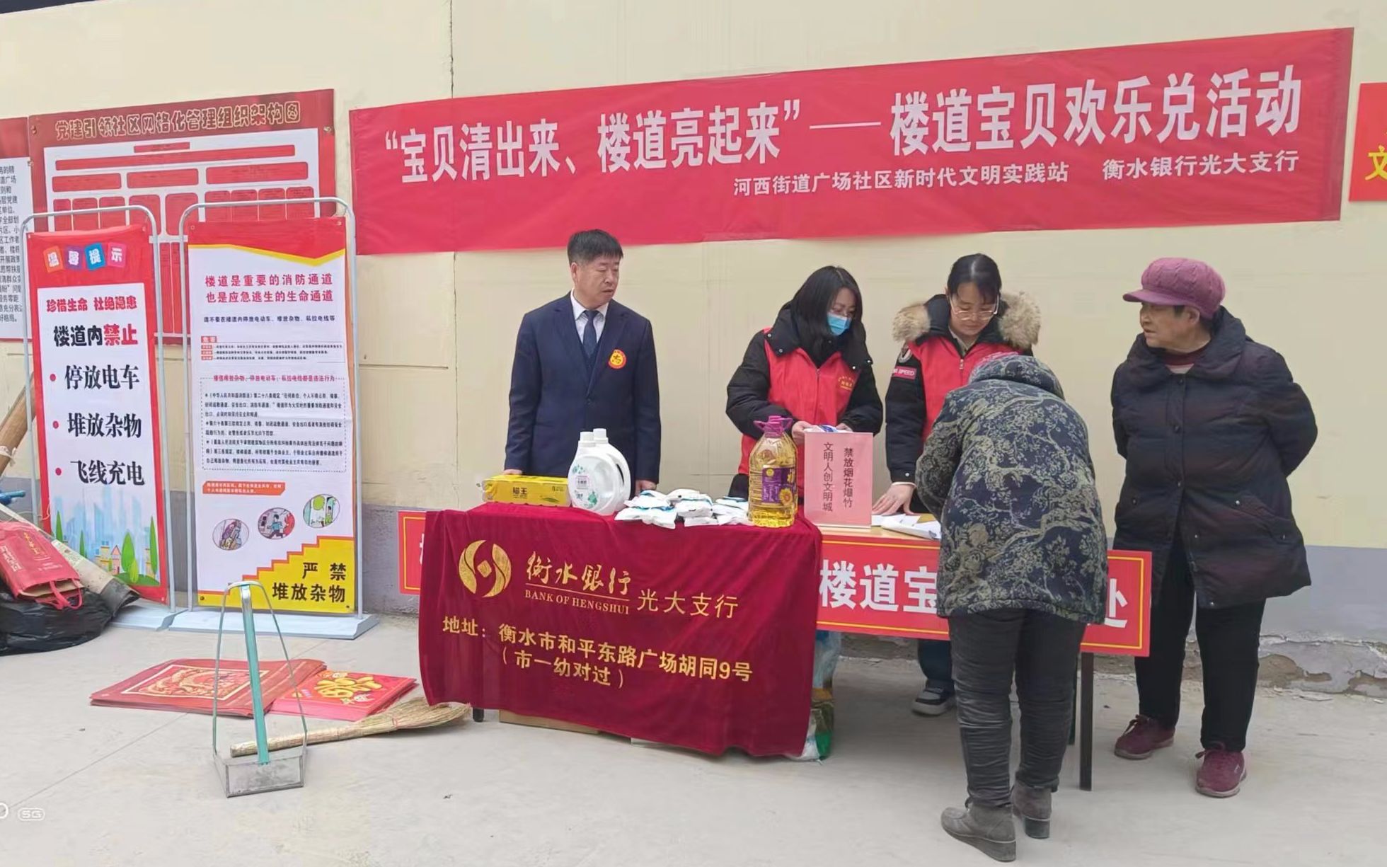 光大支行门前,市休闲广场西侧的“疫情检测点”,因疫情结束,长期闲置,影响市容市貌,总行领导、河西街道办高度重视,支行积极配合,通过多方研究,最终敲定方案将“疫情检测点”改造成“河西驿家人·民情驿站”,屋内设置有环卫工人休息区、金融知识宣传墙。在这里,金融知识普及宣传活动开展了一场又一场,早就成为了广场的标志性建筑。其中,光大支行参与的“民情驿站”问民需“宝贝兑换”解难题项目荣获河西街道2023年度社区治理十佳联盟共建项目。