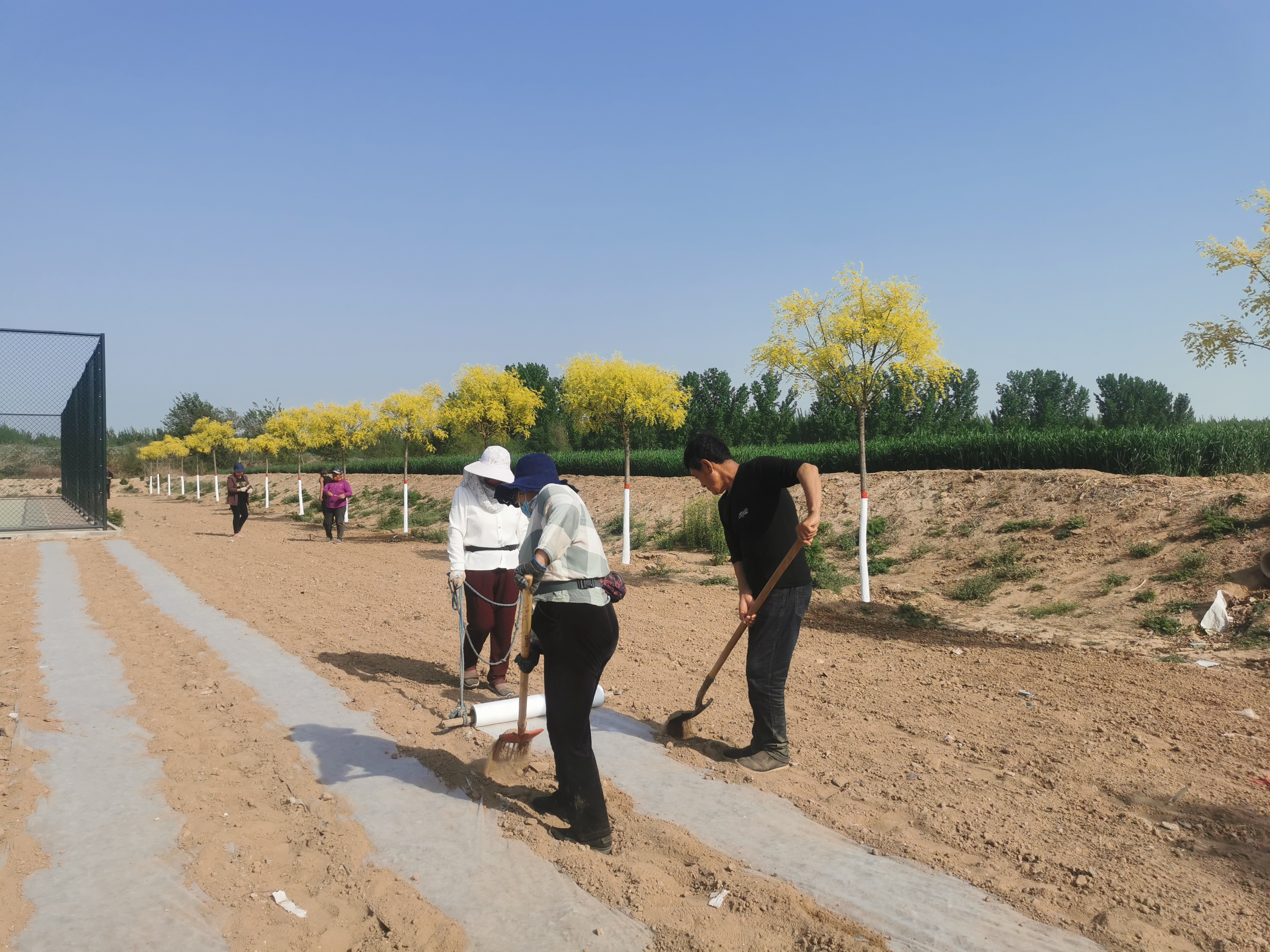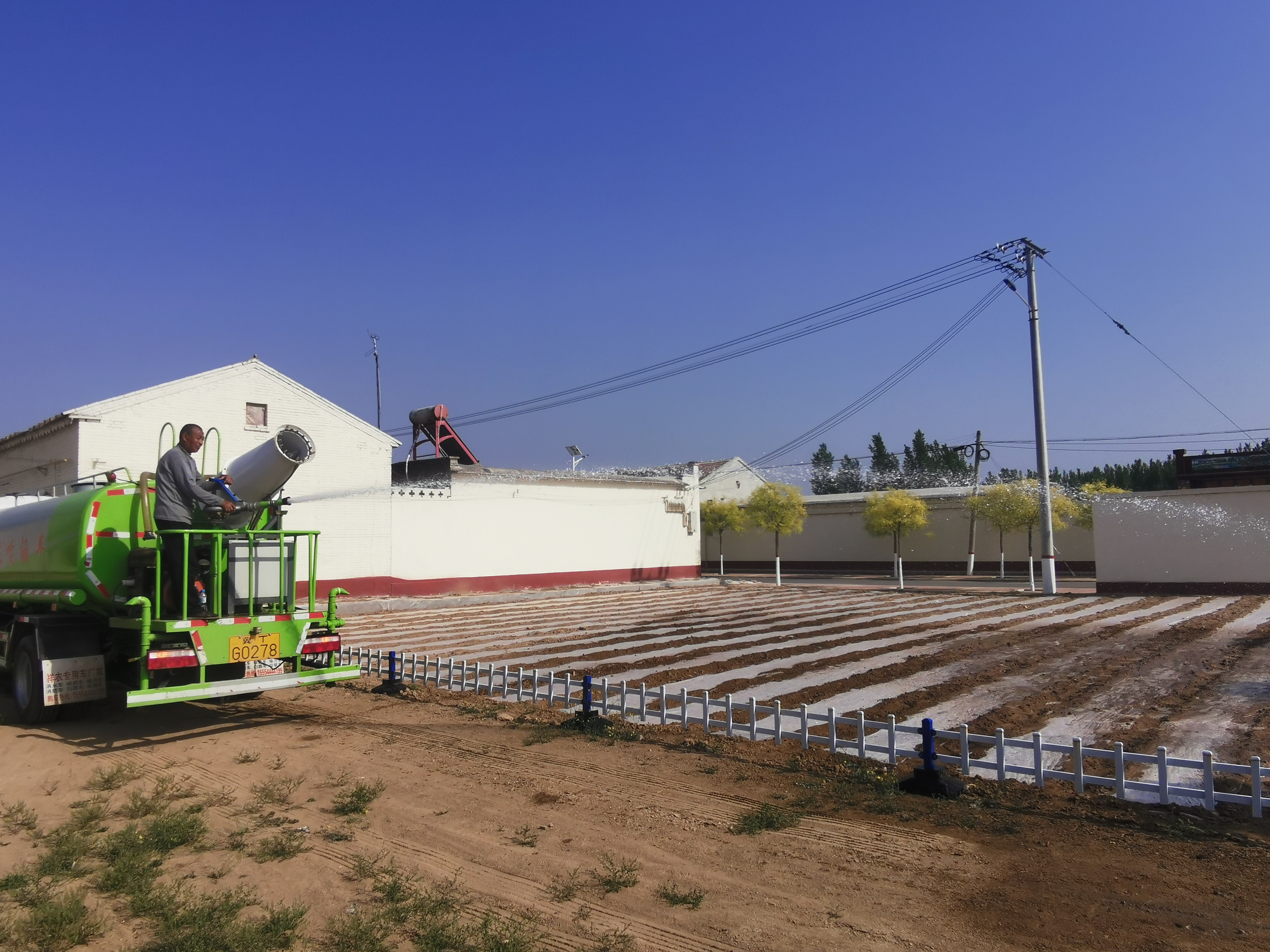 屯河头村的房前屋后,七八个村民正在忙着撒播花种。他们各司其职、配合默契,拉线、撒种、耙土、覆膜、盖土、浇水一气呵成。短短两日,全村房前屋后的小空地就变成了“小花园”。