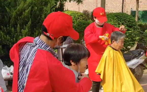 每月初九去五公村,每个月固定去两次火车站广场,打听到哪个镇村有需求团队成员也会商定好时间一起去......随着团队规模的不断扩大,以及“业务”的不断熟练,“爱心义剪”小队的服务范围也在不断扩大。考虑到来理发的大多是老人,他们还精心选择了时间段:春、夏季节的理发时间一般在上午,秋、冬季节的理发时间一般会选择在下午。