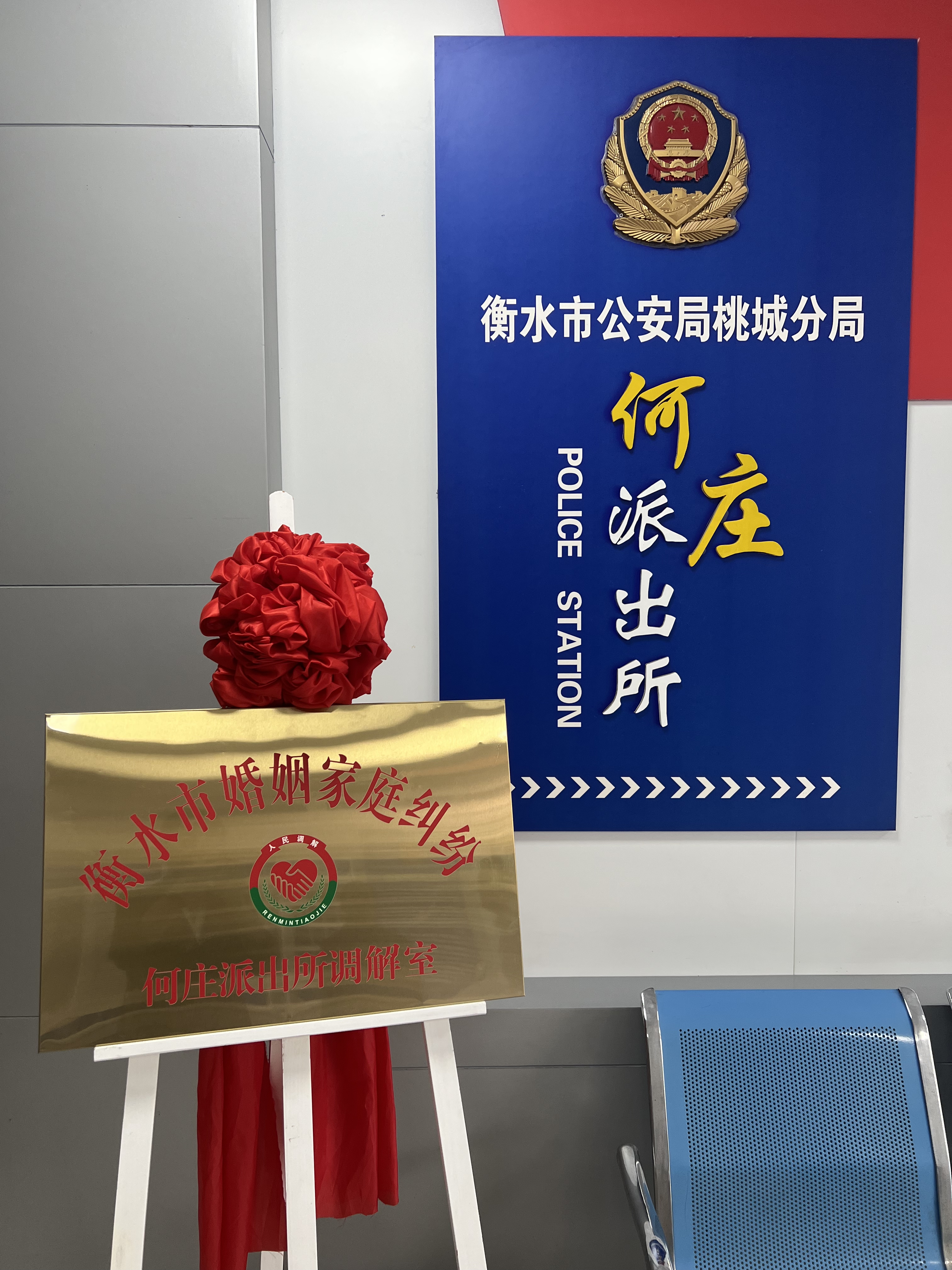 为发扬新时代“枫桥经验”,大力开展婚姻家庭纠纷调解,助推基层社会治理,促进社会和谐稳定,5月8日,全市首家派出所婚姻家庭纠纷调解室揭牌仪式在桃城公安分局何庄派出所举行。这标志着全市首家派出所婚姻家庭纠纷调解室正式成立。