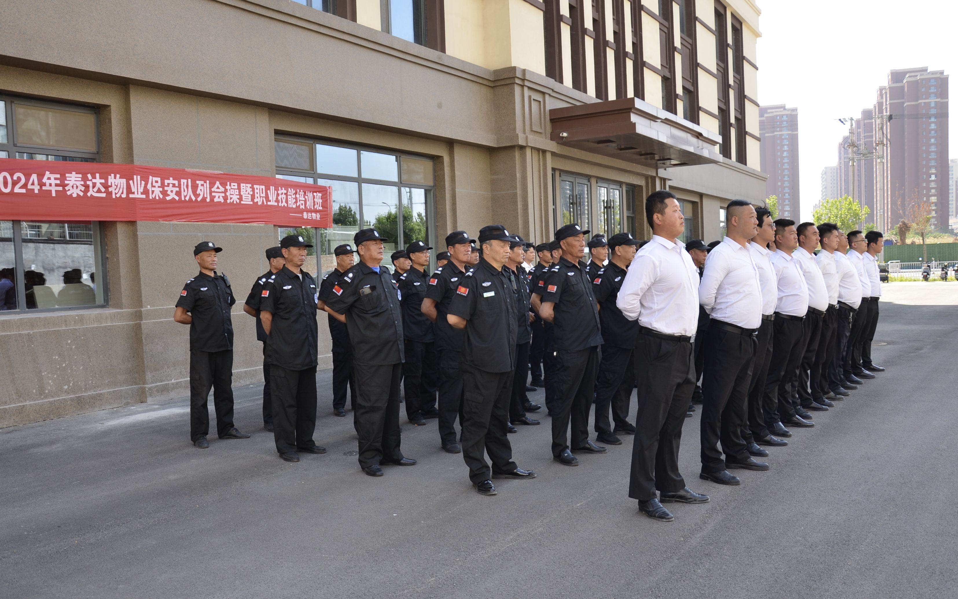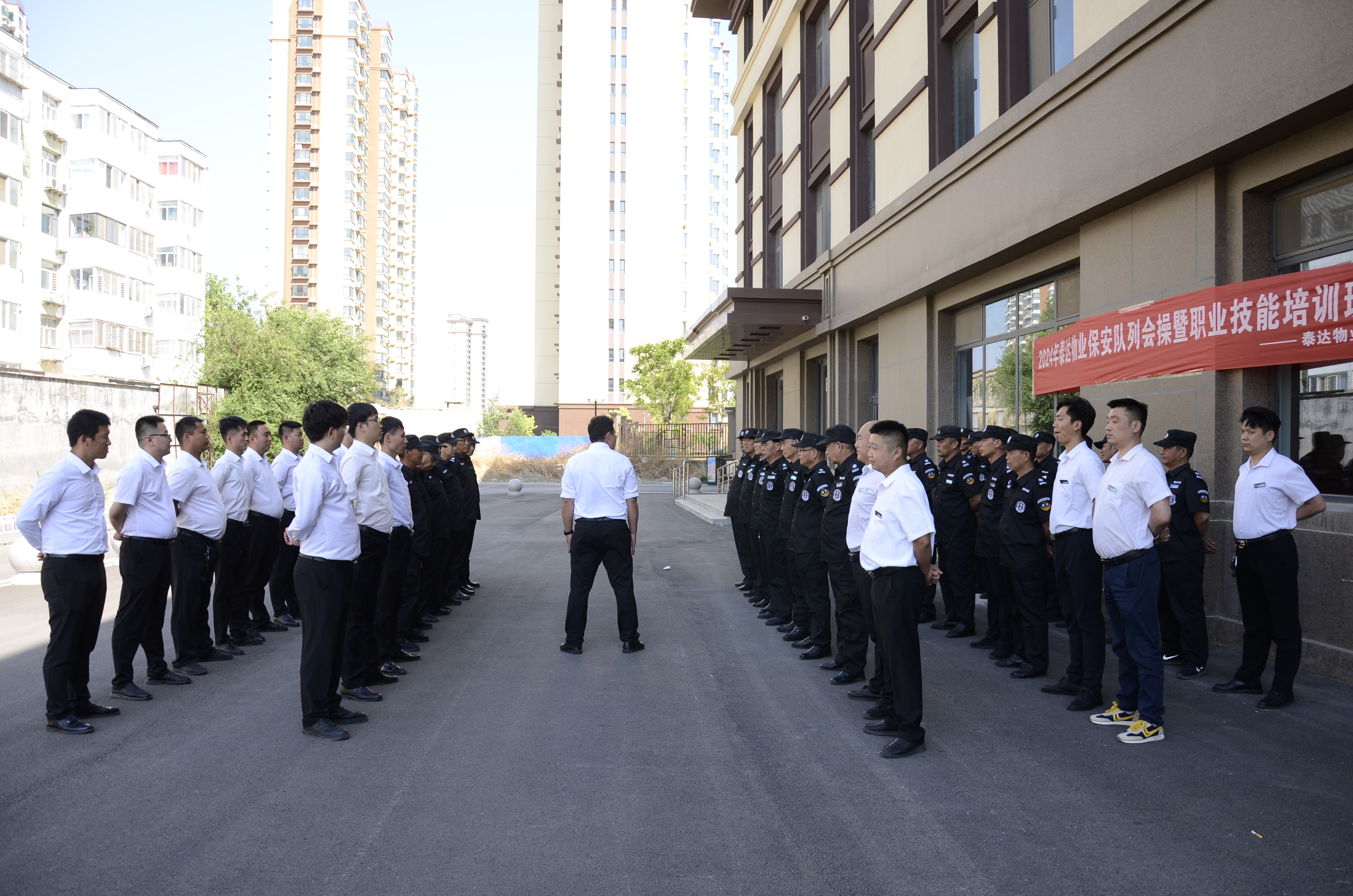 队列是保安的形象和门面,队列训练是改善保安形象、增强保安身体素质的基本方法之一。为进一步提升安保服务水平,切实提升物业服务品质,5月8日,泰达物业成功开展了保安队列会操暨职业技能培训活动。