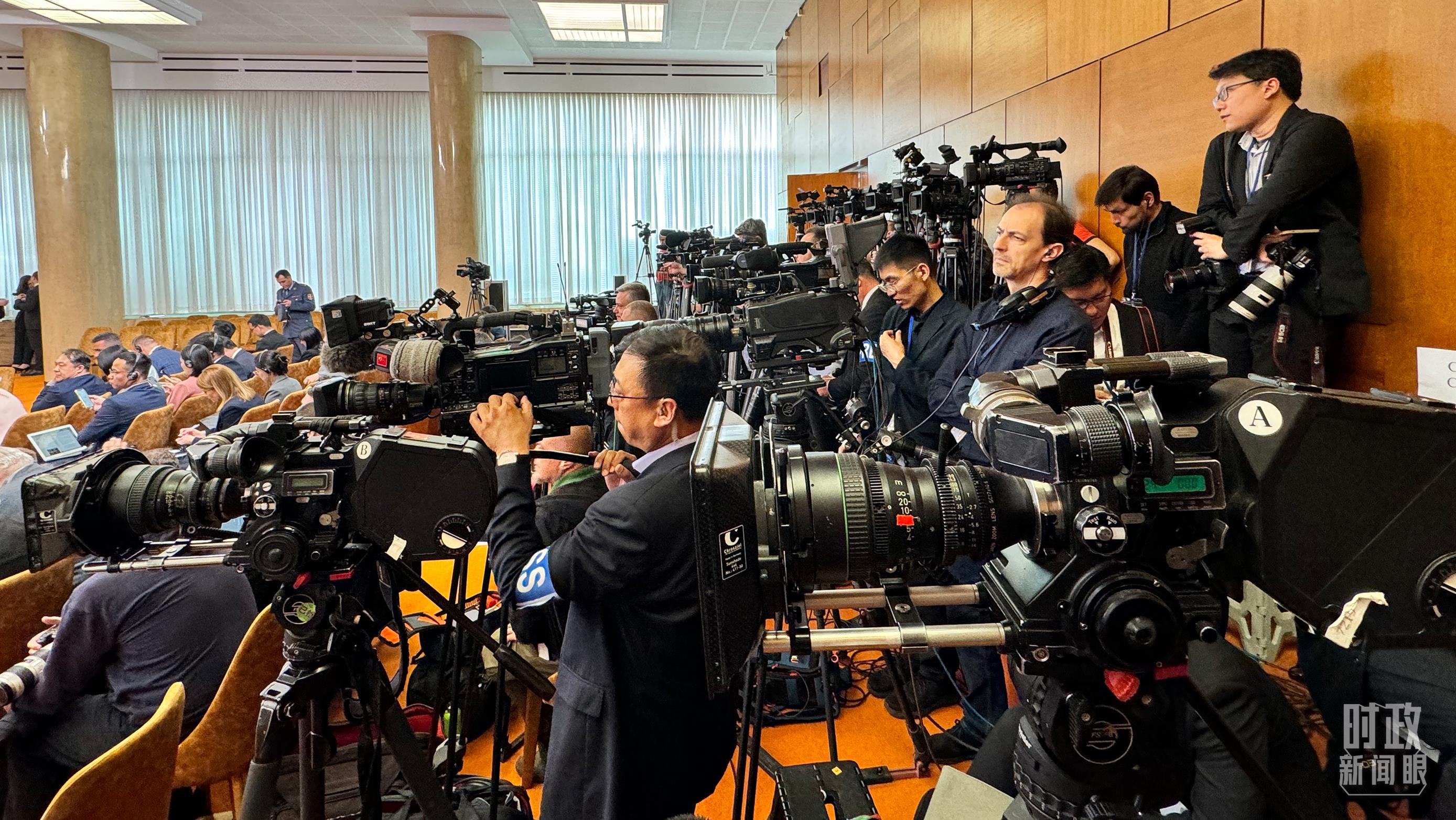 △这是中塞两国元首共见记者开始前的现场,记者云集。(总台央视记者李增仁拍摄)