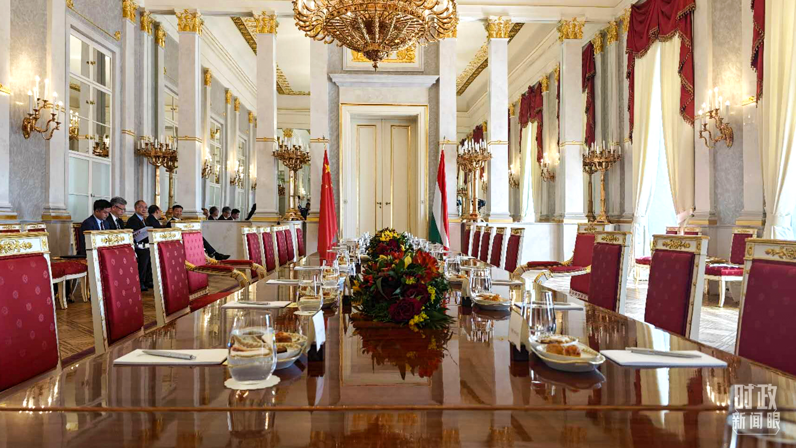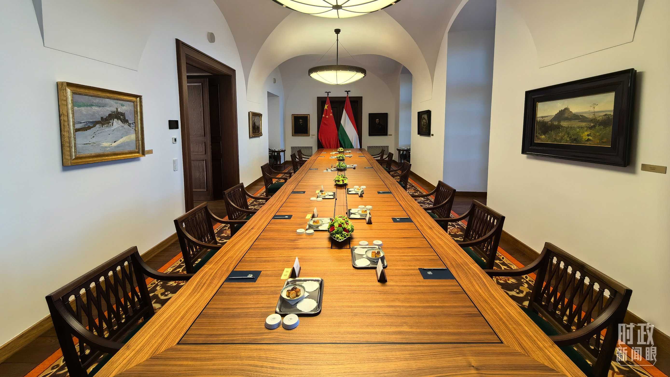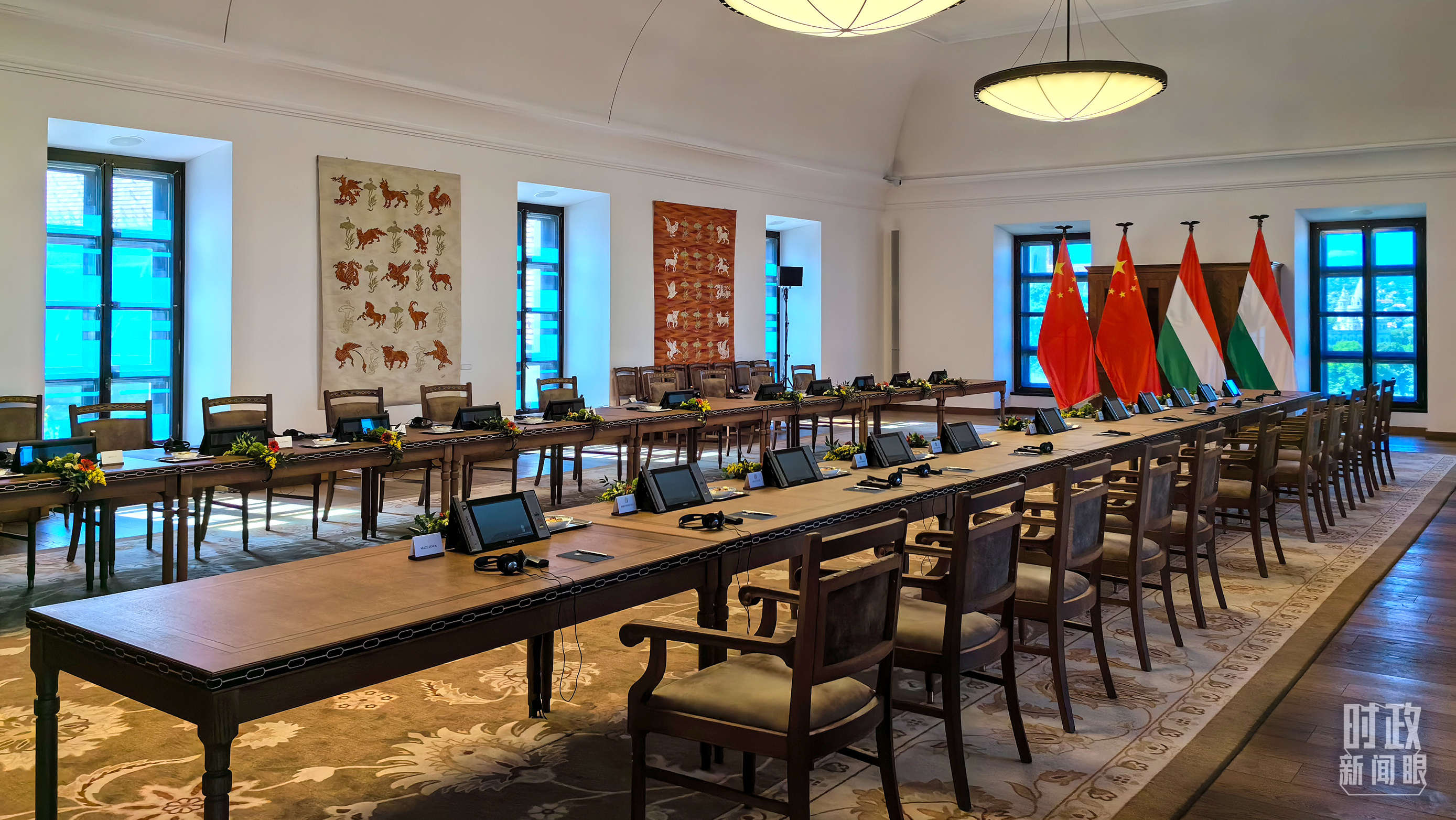 △习主席和欧尔班总理在这里举行大范围会谈。这是会谈开始前的现场。(总台央视记者陆泓宇拍摄)