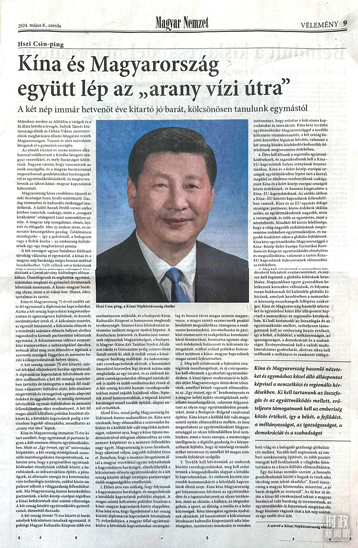 △习主席在匈牙利《匈牙利民族报》发表的署名文章。(总台记者沃龙拍摄)