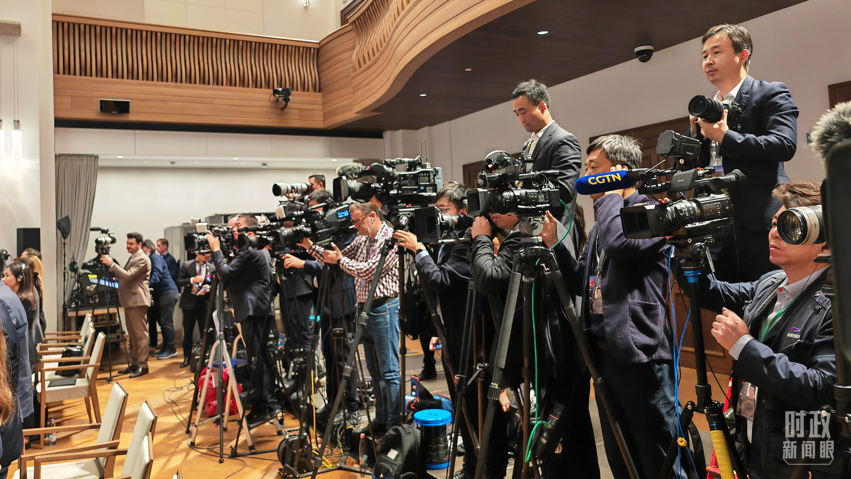 △习主席同欧尔班总理共同会见记者,现场记者云集。(总台央广记者马喆拍摄)