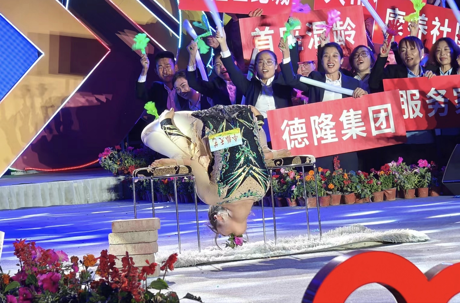 紧接着,令狐天艺小姑娘的“后仰叼花”绝技表演吸引了所有人的目光。她身手敏捷,每一个动作都让人屏息凝气,精彩绝伦的表演赢得了现场观众的阵阵掌声和欢呼。