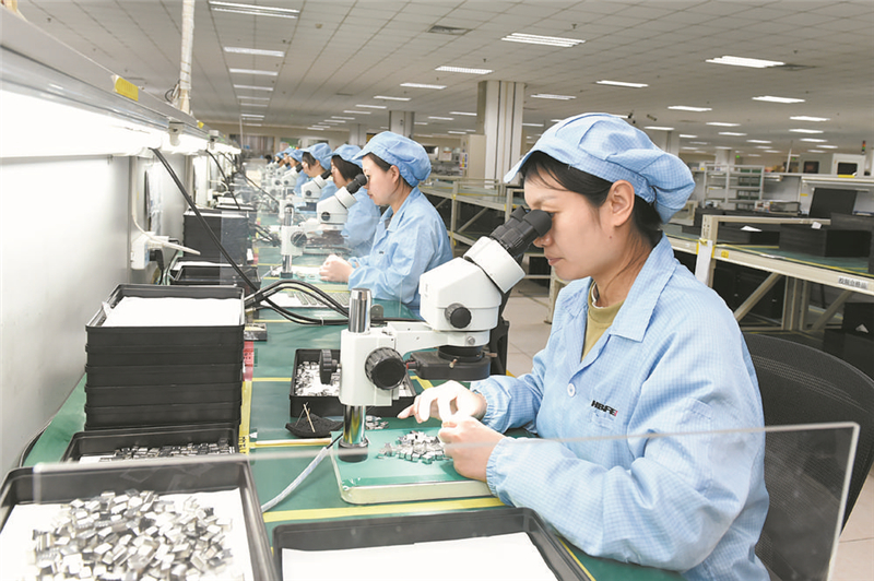 在位于鹿泉区的河北中电华拓科技有限公司,工作人员正在生产自主研发的电子产品。