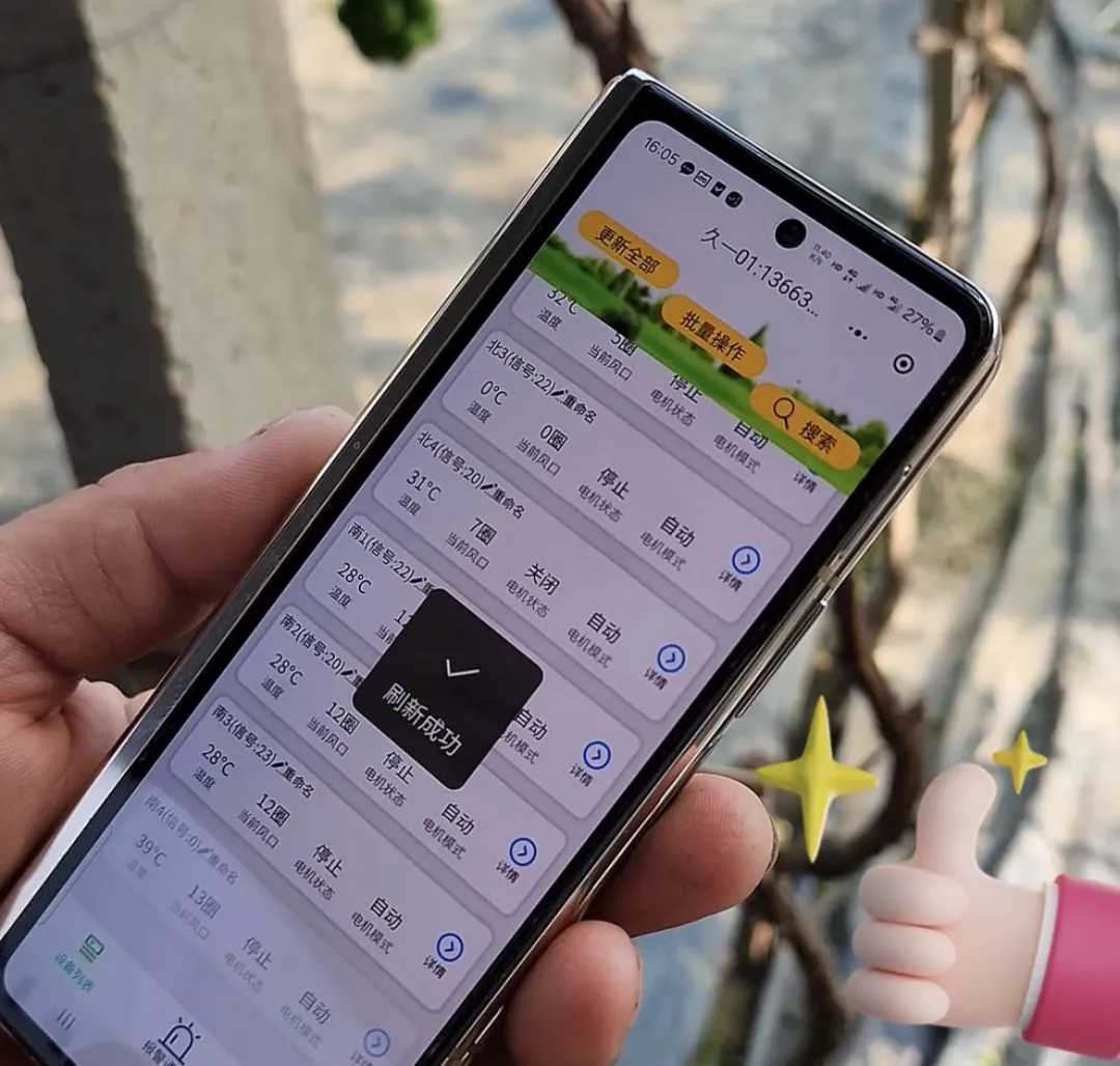如今的蔡广数早已摆脱洪灾带来的阴霾,以全新的姿态投入到葡萄产业发展中。他家重建的葡萄棚中,有8座升级为全钢架无立柱新型日光温室,相比传统温室,少了土墙和水泥立柱,土地利用率多出近30%,并且抵抗风雪、冰雹、洪灾等自然灾害的性能大大提高。同时,温室大棚管理更方便,手机成为智能管家。棚内设有专门调节温度、湿度的智能化温控系统,在手机上就可以查看大棚内各项数据,并自动调控棚室内的通风、亮度、湿度、温度等。棚内的葡萄不受土地、空间和气候条件的约束,可实现反季节生长和成熟,提高种植收益。
