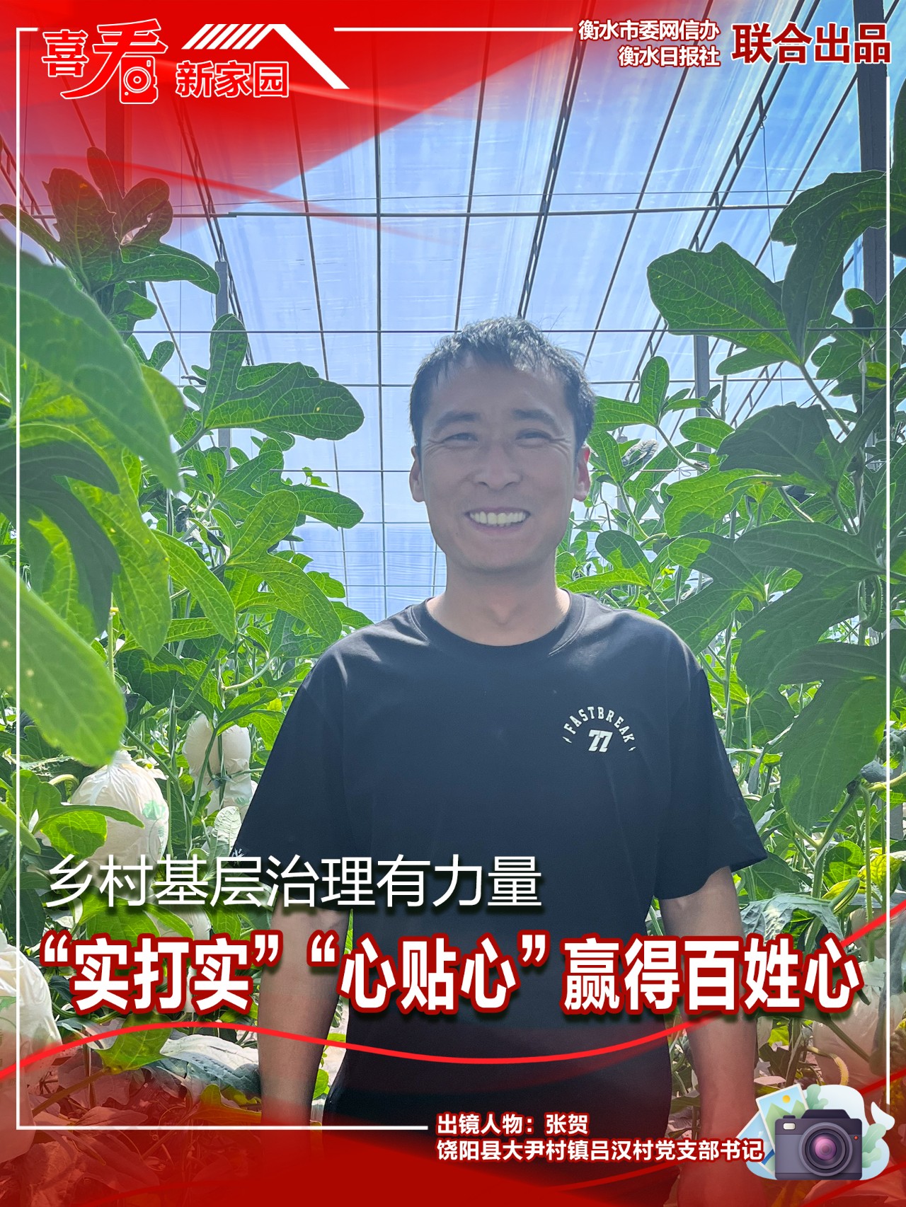 在这绿意盎然、万物葱茏的美好时节,在饶阳县大尹村镇吕汉村的大棚里,绿油油的瓜苗长势喜人,小甜瓜丰收在望。这来之不易的“硕果”,离不开一个人——今年38岁的村党支部书记张贺。