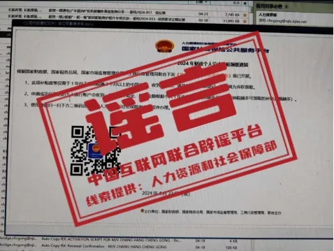 谣言:扫码可领“2024年个人劳动补贴”?