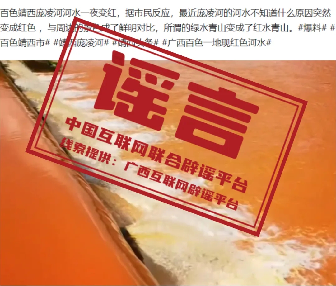 谣言:广西百色靖西庞凌河河水一夜变红?