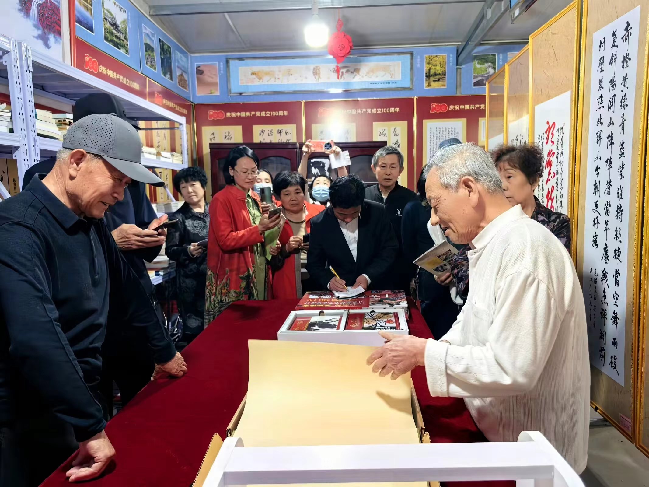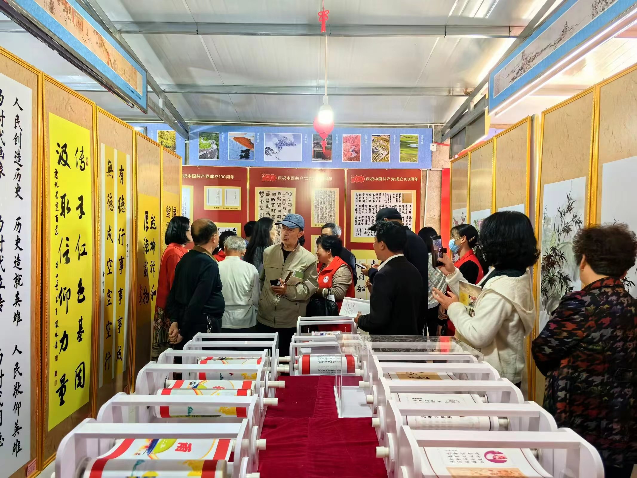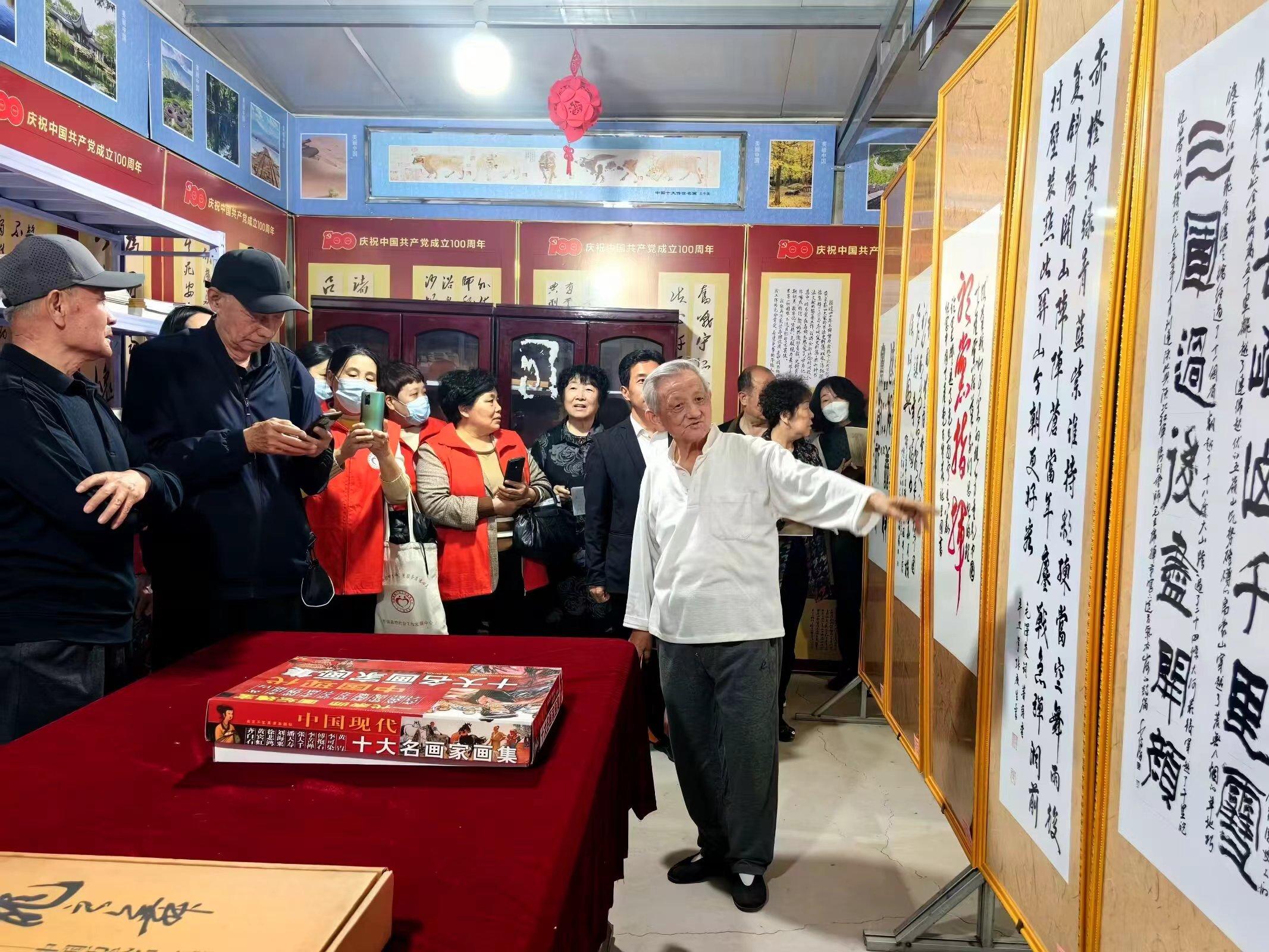 “在党半世纪,赞歌颂忠魂。”为庆祝伟大的中国共产党百年华诞,2021年,孙中杰老人又在功德颂展馆东侧创建了书画作品展览馆,并承办了全市书画界建党百年作品展。他亲自布展,当时共展出全国各地书画名家佳作81幅,件件功力深厚,幅幅主题鲜明,吸引了众多的参观者。小村庄里办大展,传为一段佳话。