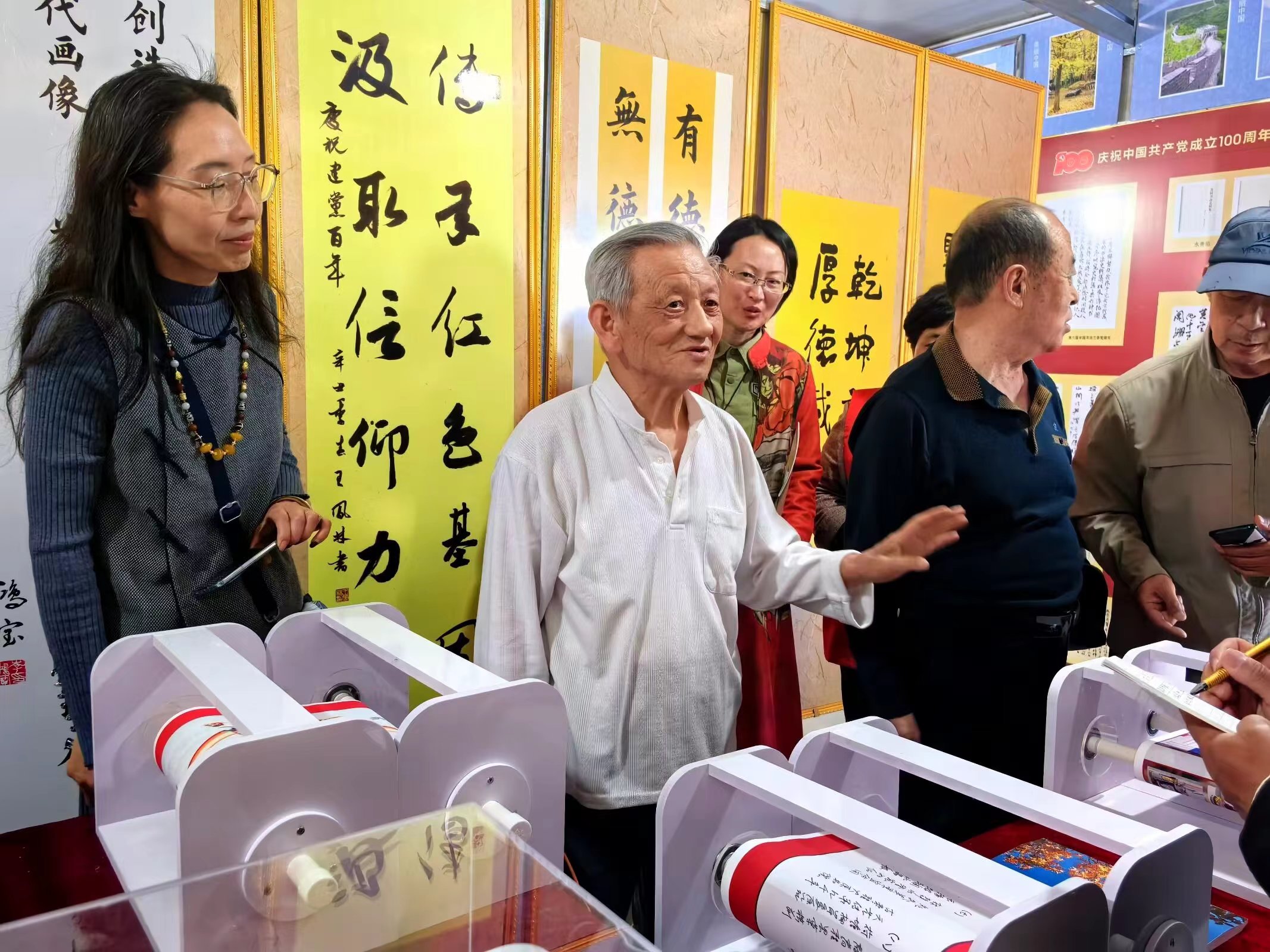 活动结束后,老人将展馆保留下来,每年根据教育主题不同不断增添新内容,并不定期举办书画笔会等活动,持续发挥其育人功能。如今,展馆展品数量已增至110余件,还展出了龙之舞书画集、传世名画、历代名人字画、十大画家作品集、中国书法1—7届兰亭奖获奖者作品集等,好多都是收藏级的墨宝真迹,多方位展示了书画里的中国,品位之高,用心之苦,让书画爱好者仰止。