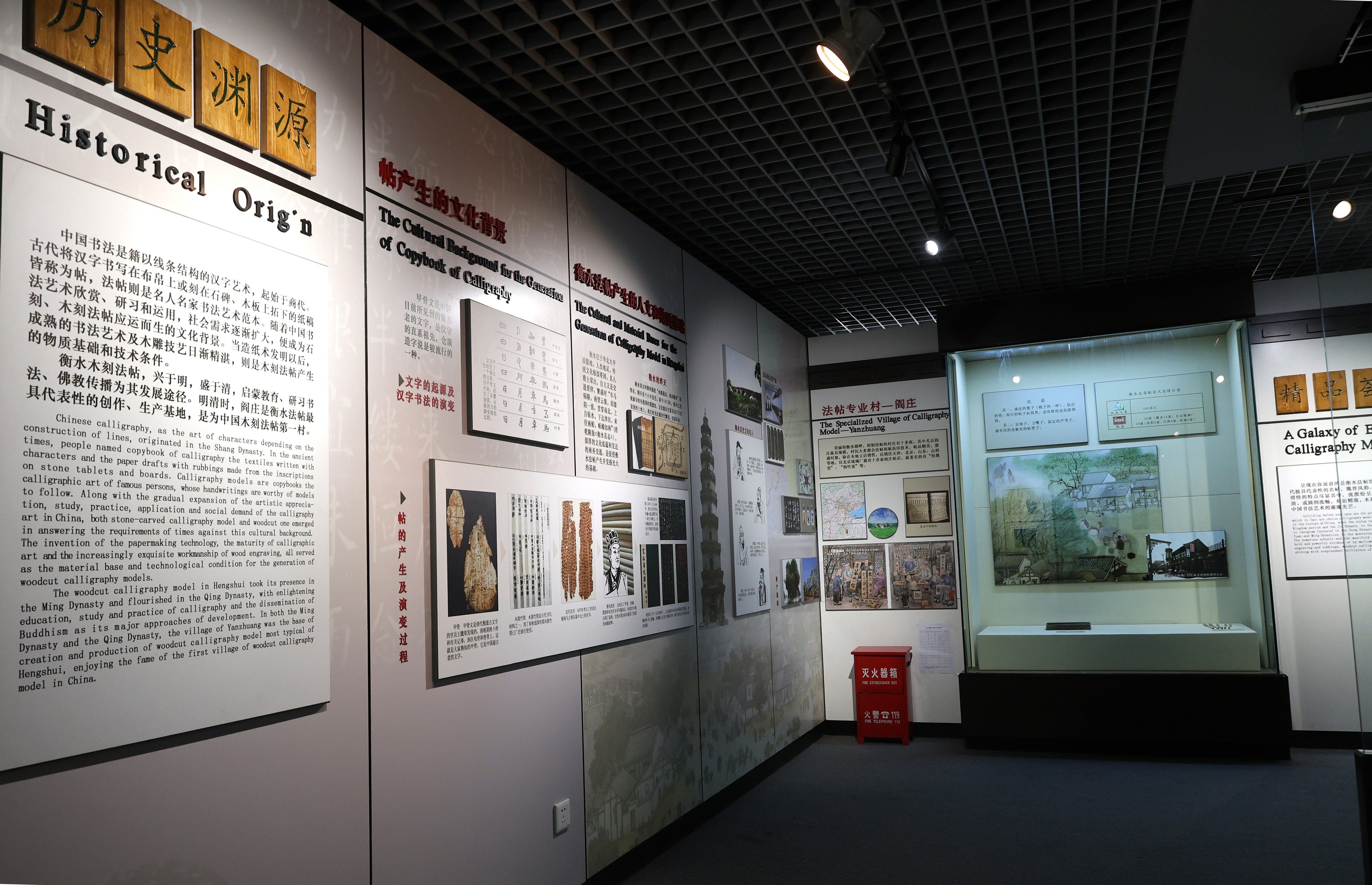 法帖是中国书法艺术载体之一,2011 年,衡水法帖雕版拓印技艺被列入第三批国家级非物质文化遗产名录。因其珍贵的文物价值、高超的艺术价值和重要的学术价值,1994年国家文物局专款在宝云寺院内兴建起“法帖博物馆”,2009年迁址至市区人民路衡水内画艺术博物馆。如今的法帖博物馆,展示面积为200平方米,分两个厅,设有历史沿革、发现挖掘、精品展示、研究成果、场景再现等5个常设陈列。在精品展示区,陈列着23件清末民国时期的帖板原件,其中包括东晋时期著名书法家王羲之的小楷《道德经》帖板、宋代文学家苏轼的《念奴娇·赤壁怀古》帖板,以及唐代吴道子作品帖板等。这些帖板原件作品的上方,还摆放着与之对应的拓片,两者相互映衬。