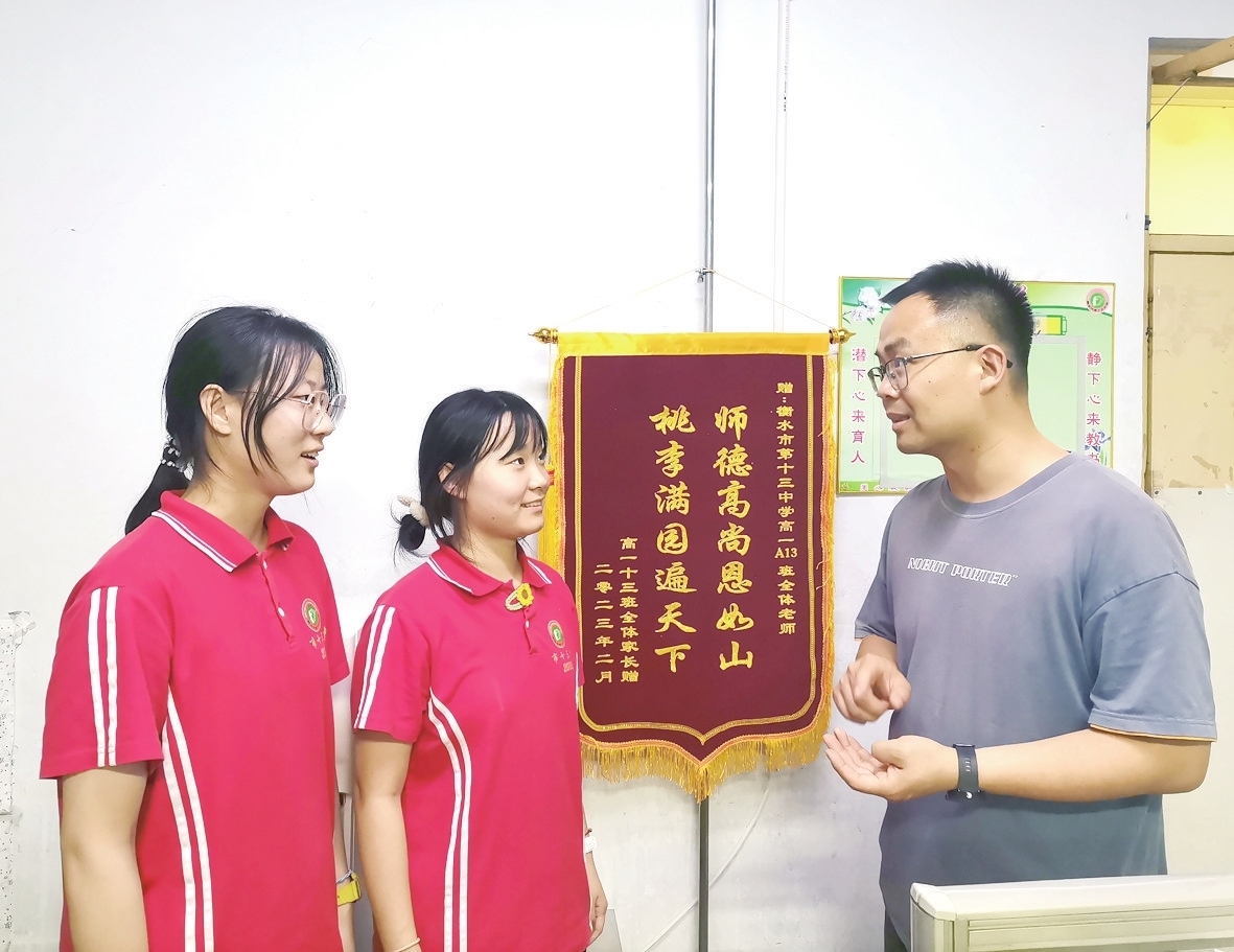 真心付出,必有回报。我的工作得到了学生家长的高度赞扬,教师节那天我收到了最好的礼物——来自家长的锦旗!这让我备受鼓舞,证明了我工作的意义!同时,我也收到学生们的节日祝福,一位同学这样写道:“亲爱的张老师,祝您教师节快乐!您辛苦啦!这是您教我的第二年,这一年里我们一同经历了分科、分班、调班,在我心里您是最不同的,您永远把我们当成娃娃,站在父母的角度引导我们的生活、学习,很安心!刚分到15班时,有很多同学问我,为什么您总是那么有活力有激情?我觉得这是因为您希望我们变得更加活泼开朗,引导我们在学习中生活中去寻找快乐。您总说每个人都要有梦想,我也明确了奋斗的目标……”我能感受到学生发自内心的真情实感,有这种师生的良性互动,我们的班级肯定没问题!