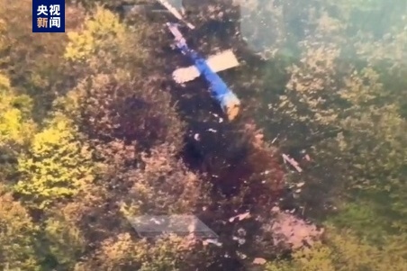 △无人机拍摄的事故直升机现场图片