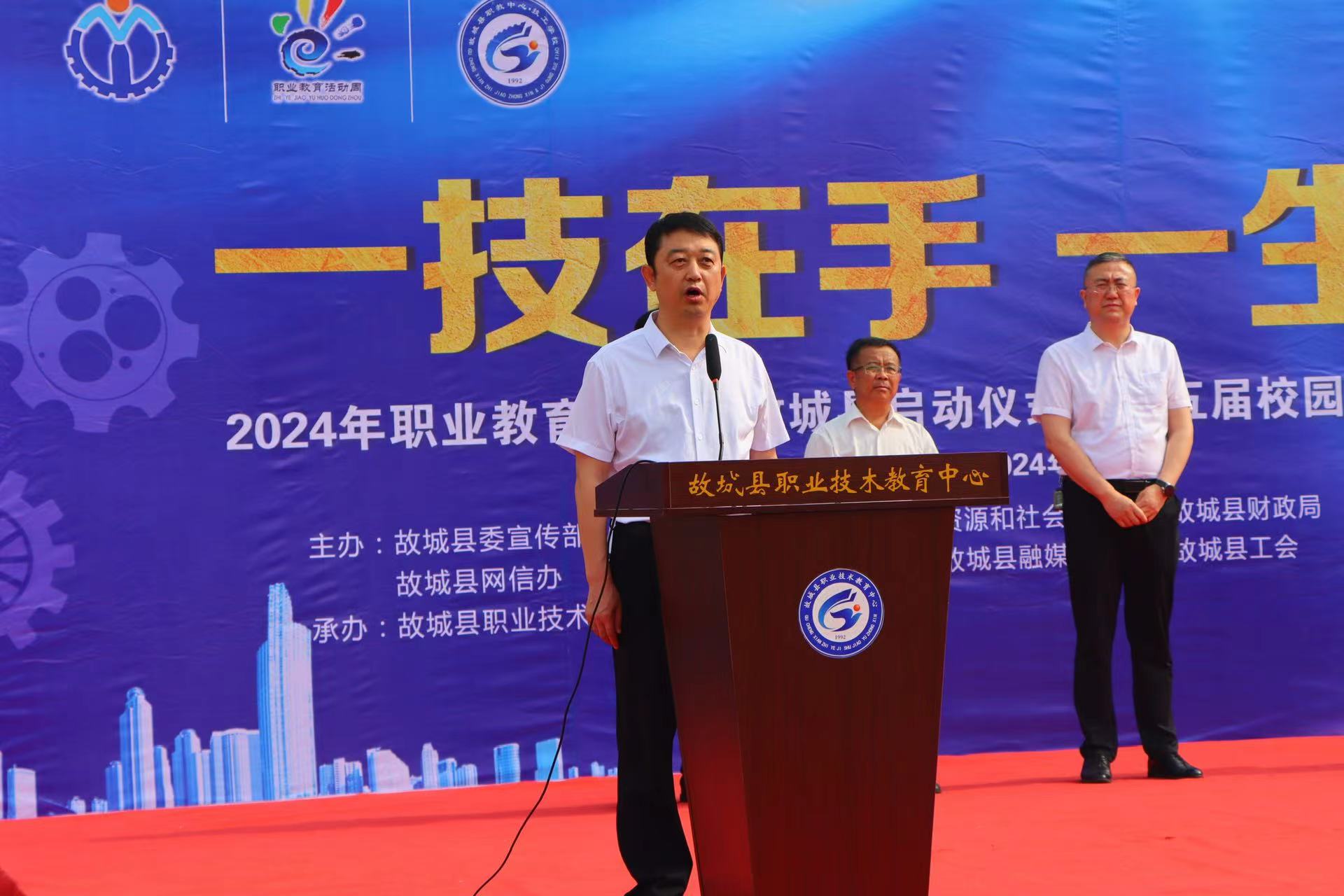 启动仪式上,随着红色幕布缓缓揭开,故城县职业技术教育中心·技工学校党总支书记郝金杰致辞。他回顾了学校在党建引领、教育创新、技能培养及心理健康服务等方面取得的显著成就,并展望了未来学校将如何以技能人才为引擎,深化教学改革,推动社会培训,强化校企合作,助力地方经济蓬勃发展。