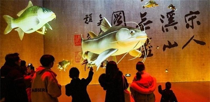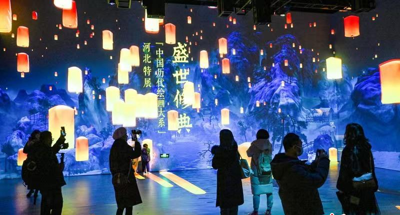 观众在“光影丹青”沉浸式展厅内观赏中国绘画的动漫效果。河北日报记者 耿辉 摄