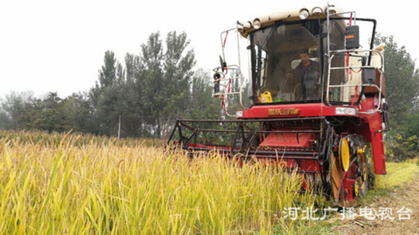 2017年10月15日,袁隆平旱稻在阜城县收割。图源河北广播电视台