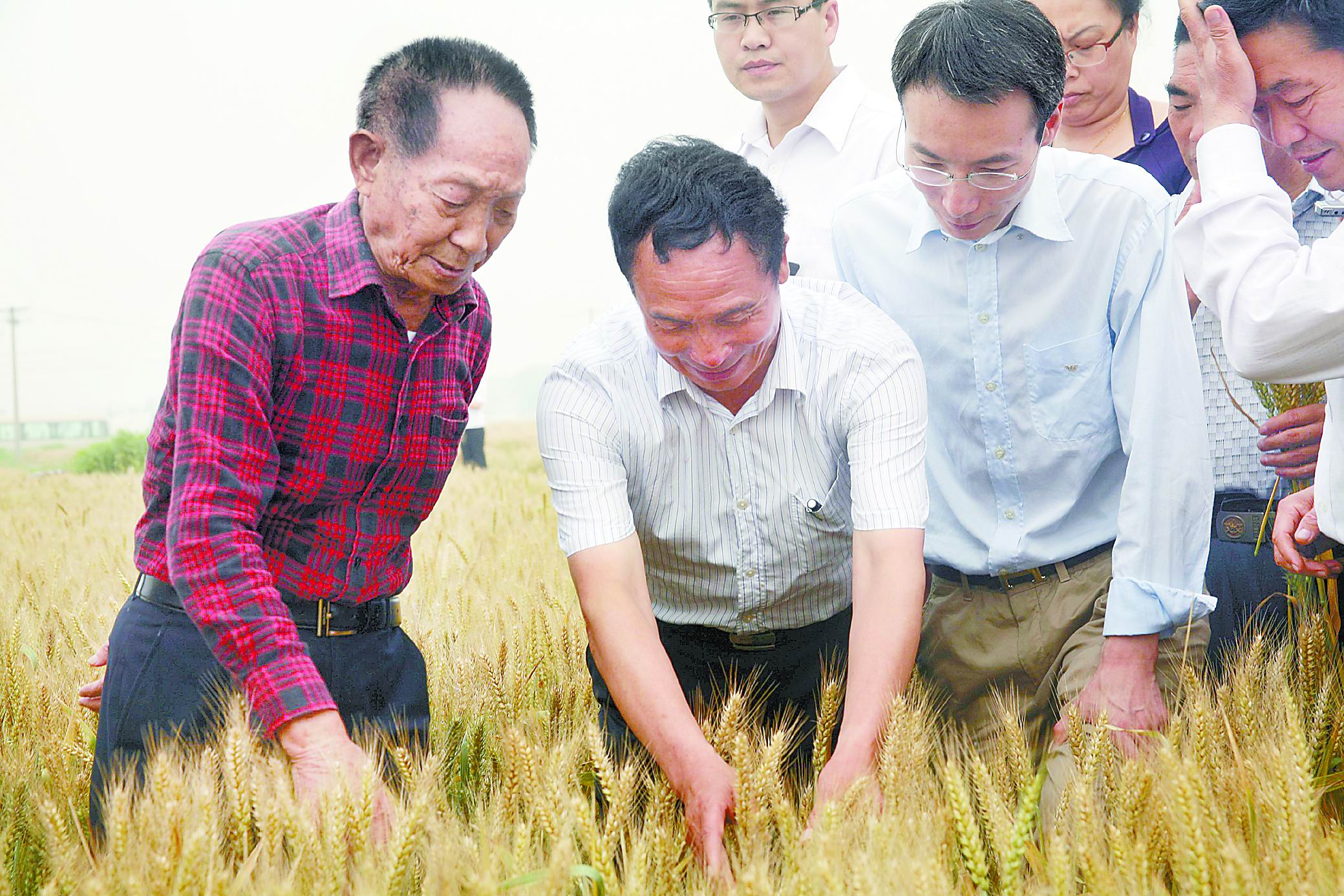 2013年6月7日,袁隆平(左一)考察永年高产麦田。(河北日报资料照片)