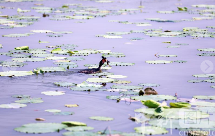 5月22日是国际生物多样性日。位于河北省衡水市的衡水湖国家级自然保护区近年来多措并举推进生物多样性保护,目前已记录到植物594种、鱼类45种、昆虫757种、两栖爬行类17种、哺乳类20种、鸟类334种。图为凤头鸊鷉在衡水湖捕食。