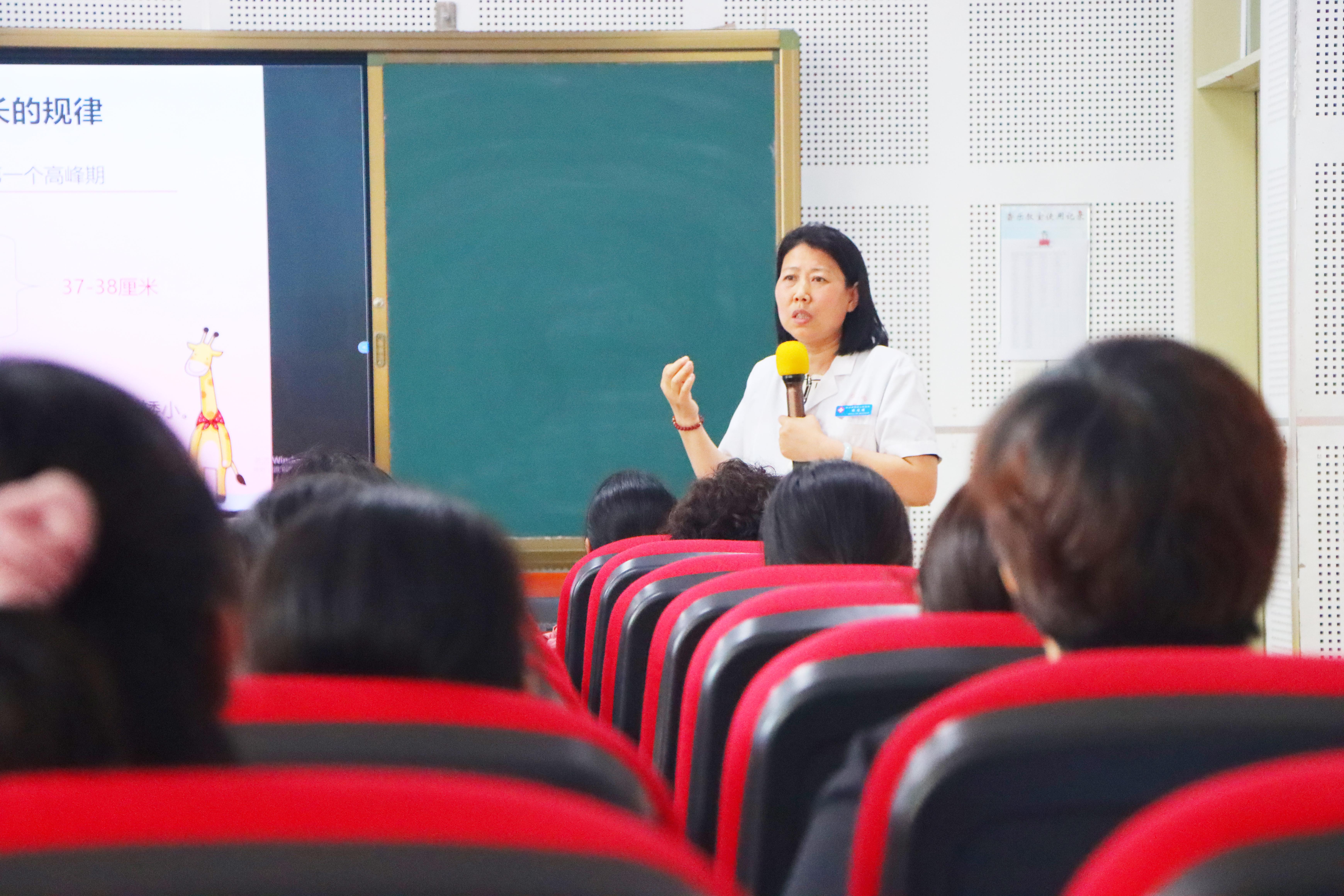 讲座中,张俊娟为家长和老师们普及了流行性感冒、水痘、手足口病、腮腺炎等传染病的预防措施以及影响儿童生长发育的因素。
