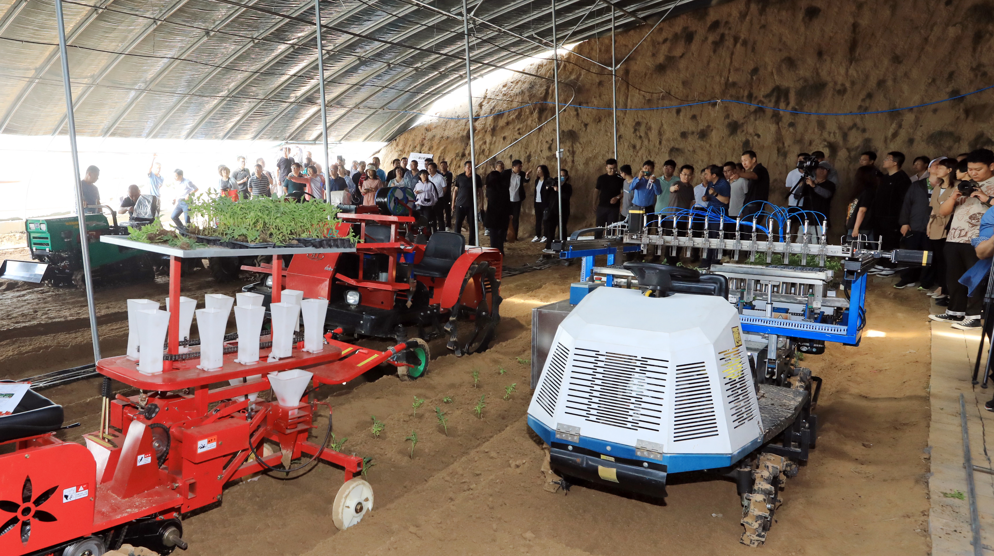 与会人员现场观摩了设施蔬菜机械的作业演示与静态展示,涵盖耕整地、起垄覆膜、播种移栽、智能环控、收获运输等多个环节。活动现场,与会专家对多款新研发的设施装备进行了点评和讲解,与技术人员、农民和合作社代表等进行了互动交流,活动现场气氛十分热烈。