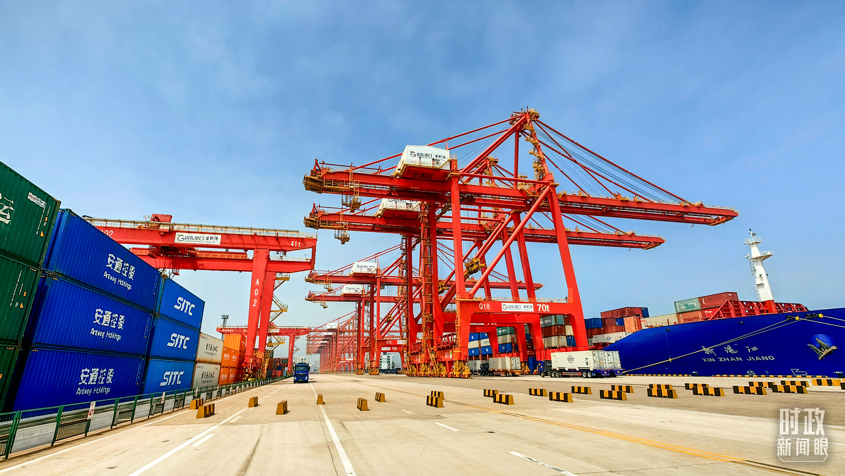 这里不仅是国家支持建设的大宗干散货智慧绿色示范港口,还建成全球首个顺岸开放式全自动化集装箱码头,单机效率提升50%,每年可削减碳排放9000多吨。