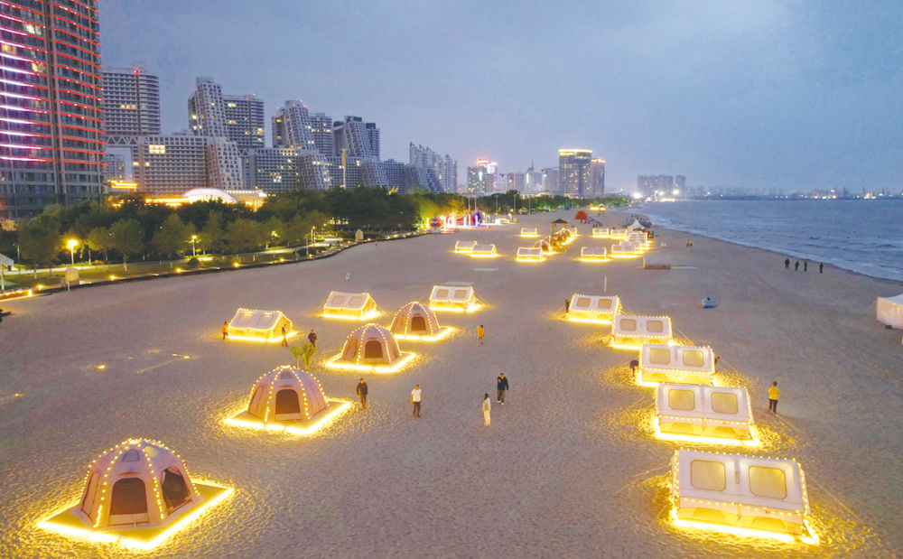5月10日,秦皇岛市金梦海湾的沙滩帐篷营地夜景。新华每日电讯记者杨世尧摄