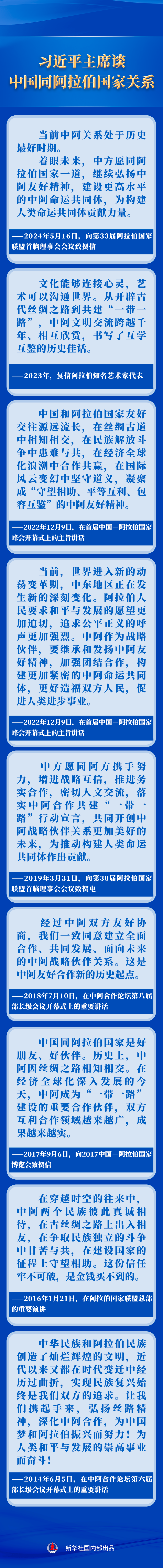 近年来,习近平主席就中国同阿拉伯国家关系作出一系列重要论述,指引中阿关系持续向前发展。