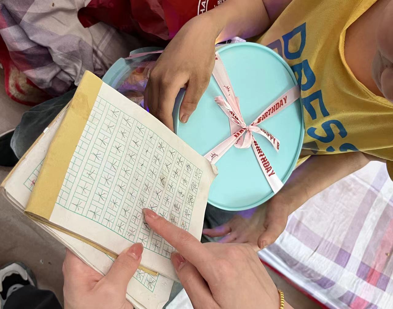10岁的小海(化名)和11岁小航(化名)已经是大家的“老朋友”了。当走进爱画画的小海家时,他立刻展示了他的绘画作品,“这个张着大嘴,有很尖牙齿的是霸王龙!阿姨你再看这个,这是我画的坦克!”看到小海性格相较于年前变得开朗了不少,大家都替他感到高兴。当走进小航家时,他向大家展示了他的十分工整的字,小航奶奶表示今年来小航的学习等各方面都有了一定的进步,她很是欣慰。