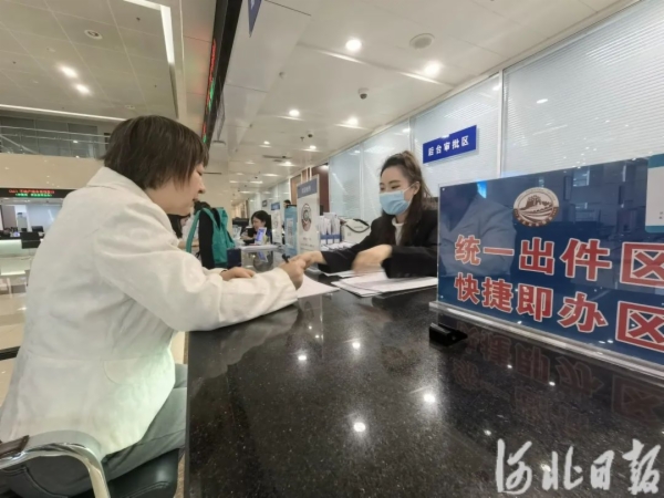 5月23日,在秦皇岛经济技术开发区行政审批局政务服务大厅快捷即办区,工作人员正为群众办理营业执照。河北日报记者 孙也达摄