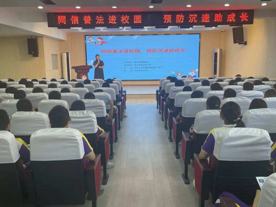 为进一步增强我市未成年人的网络法治和网络安全意识,提升未成年人网络素养,预防未成年人网络沉迷,5月30日,在“六一”国际儿童节到来之际,市委网信办组织普法志愿者走进衡水市庆丰街小学开展“网信普法进校园 预防沉迷助成长”活动。