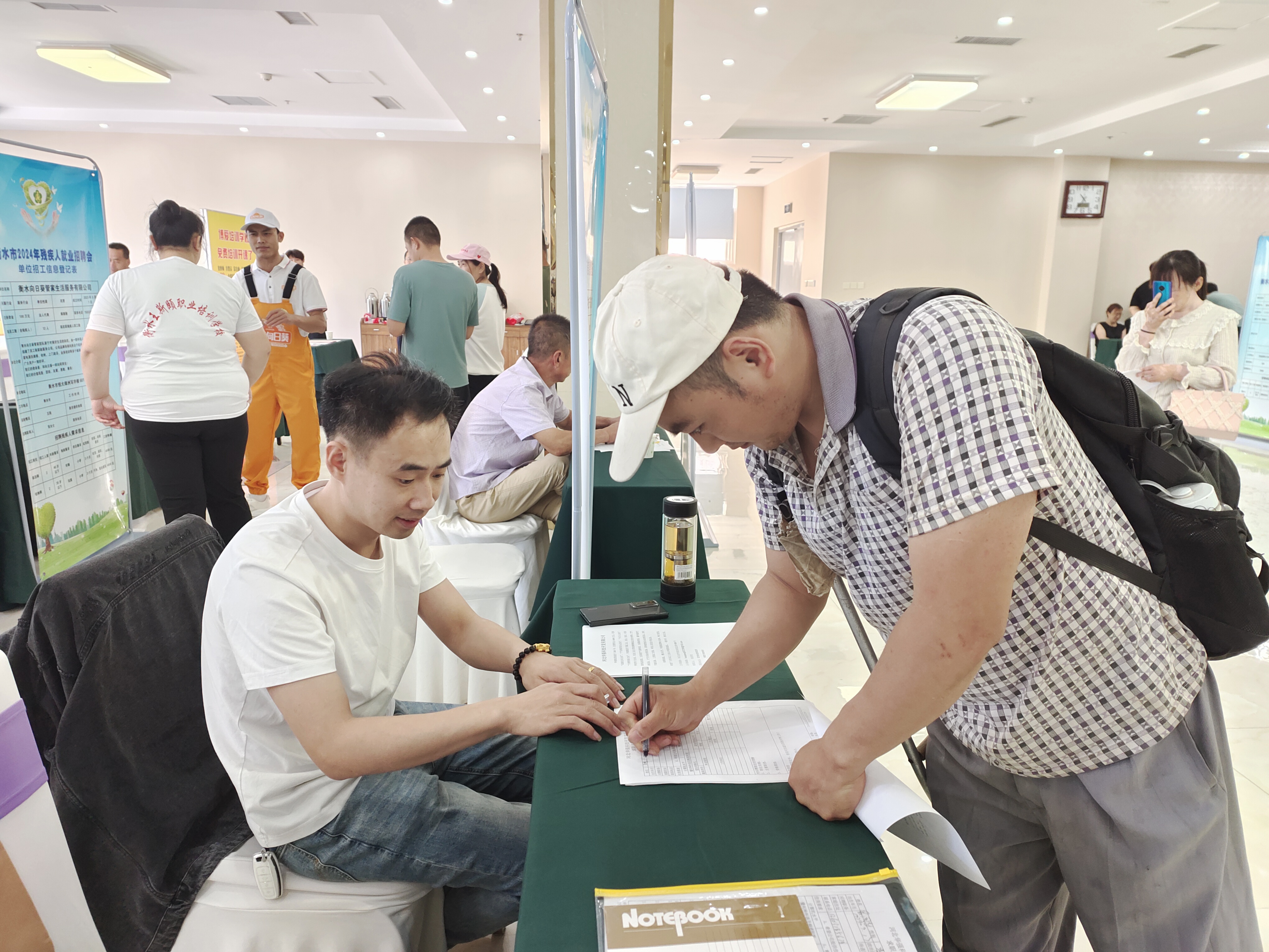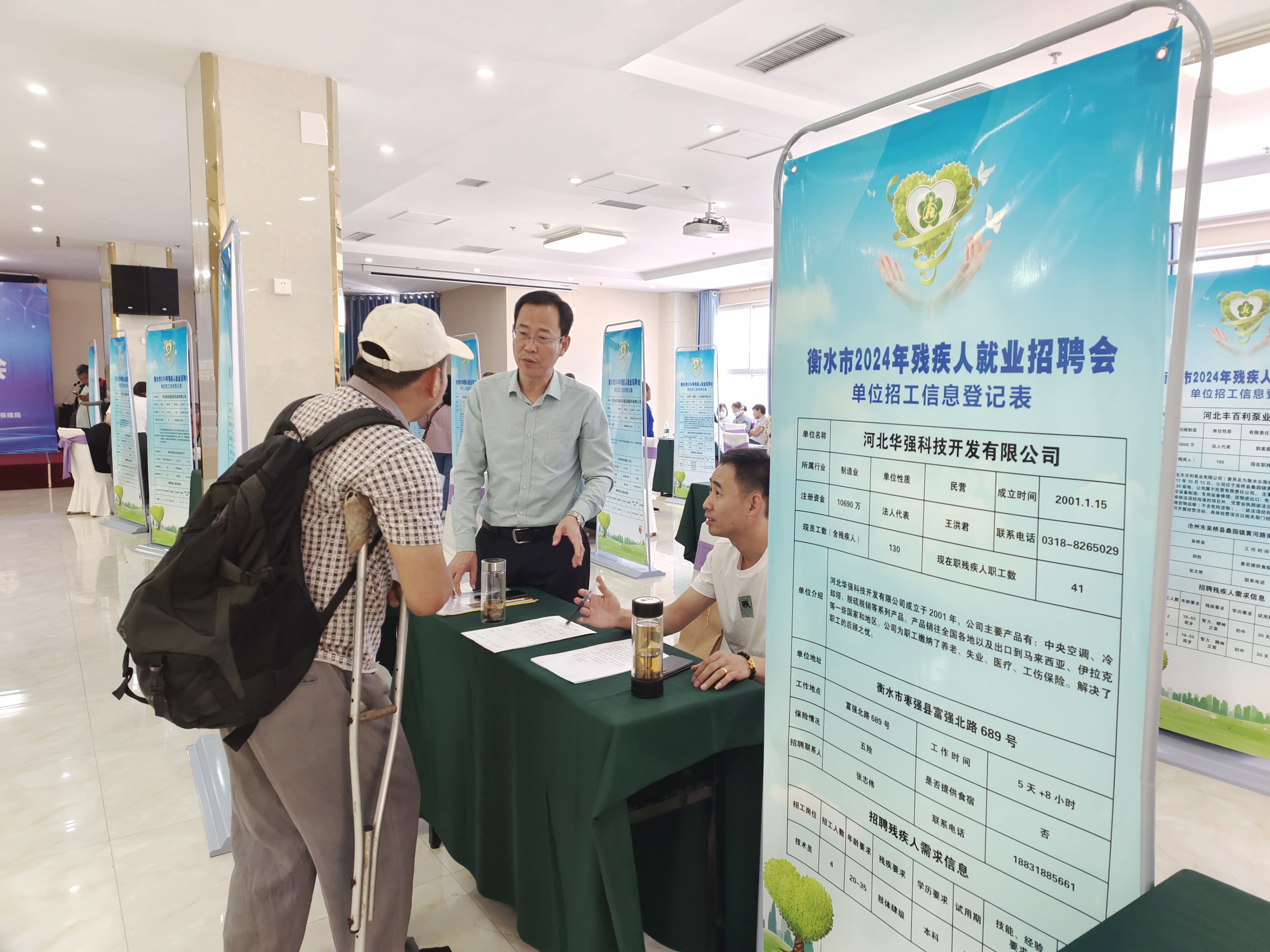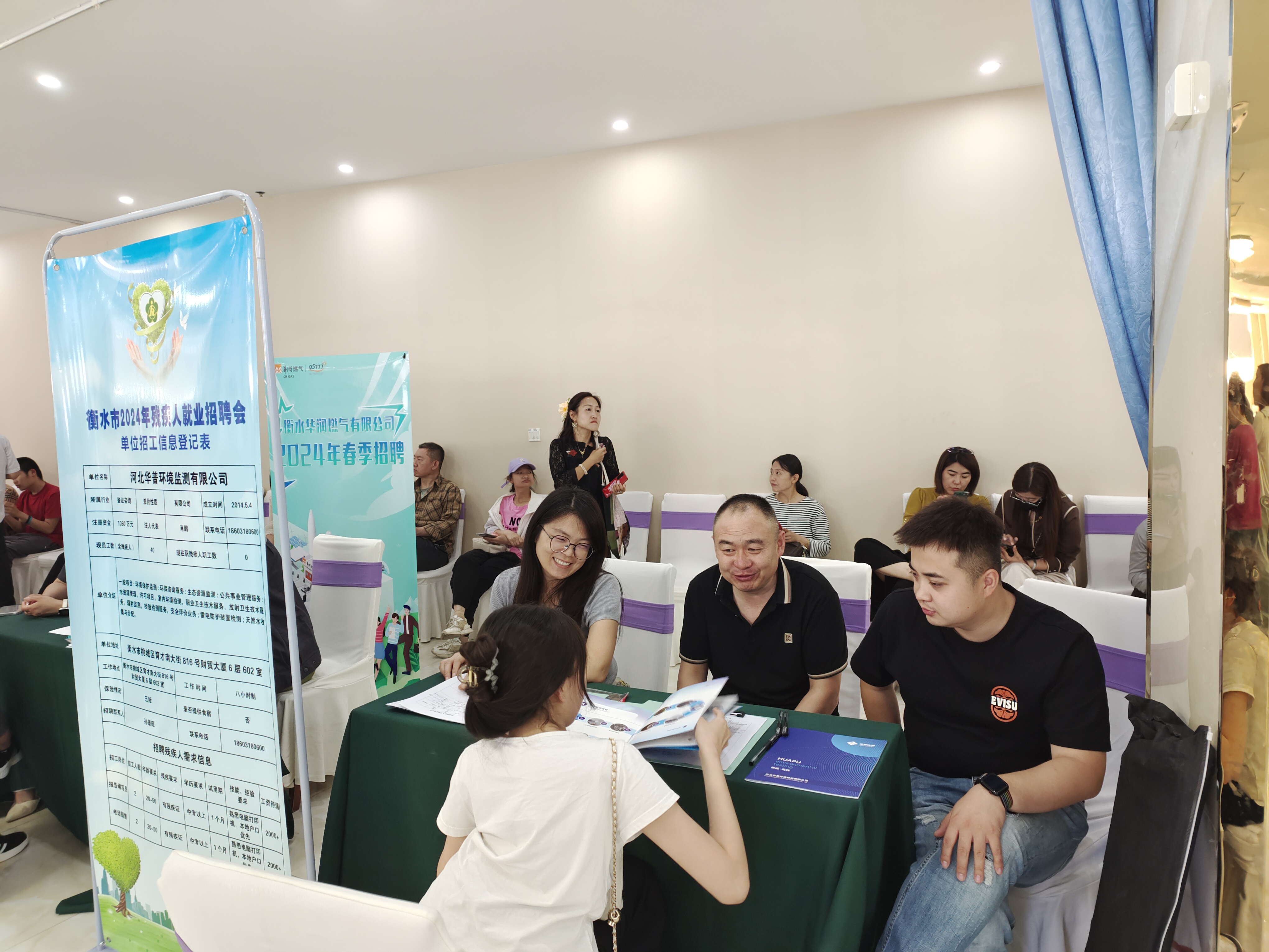 在相隔不远的河北华普环境监测公司展位前,亦有不少求职者和招聘人员热烈沟通,并填写了求职意向表。“此次招聘的岗位有报告填写员、电话销售两个岗位,需求4人,目前已经有20多人填写了求职意向书。”企业招聘负责人介绍,公司一直有招聘残疾人就业者的想法,希望通过此次招聘会为我市残疾人提供就业机会,这也是企业履行社会责任的体现。