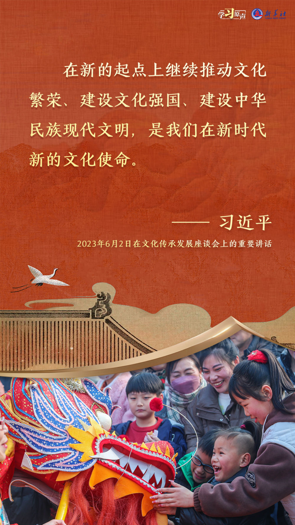在全面建设社会主义现代化国家新征程上,我们要坚持以习近平新时代中国特色社会主义思想为指导,坚定文化自信、担当使命、奋发有为,共同努力创造属于我们这个时代的新文化,建设中华民族现代文明。